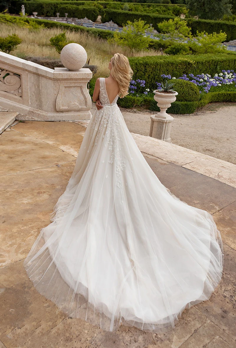 Свадебное платье-трапеция с V-образным вырезом, кружевной топ с апп...