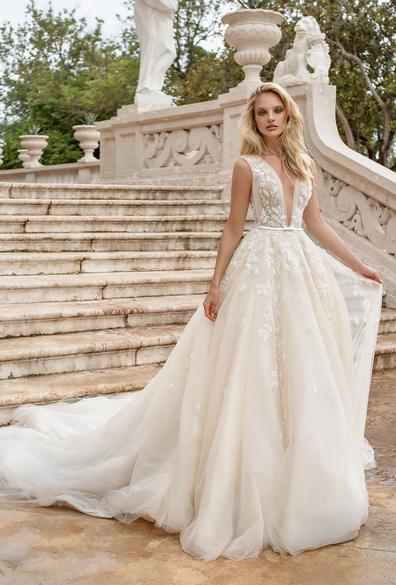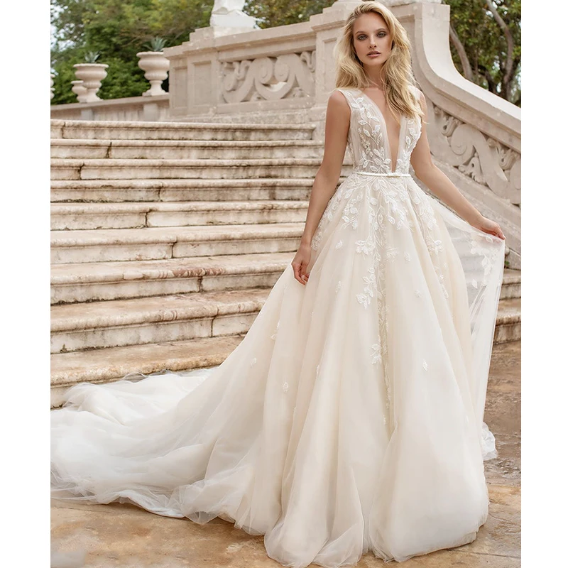 Шикарное платье для невесты, без рукавов, с V-образным вырезом