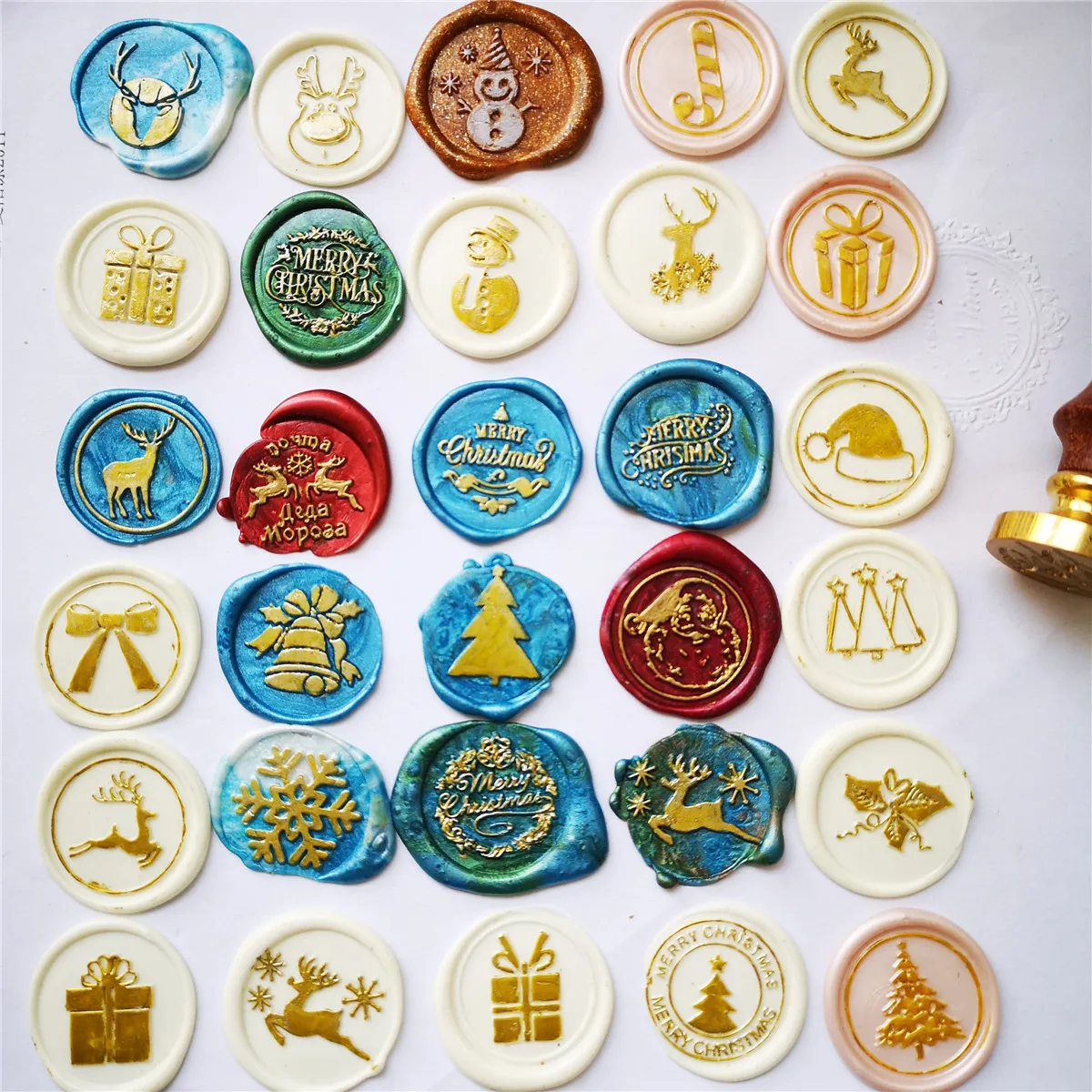 2020 Новый Рождественский набор восковых печатей с jingle bell украшение Снежинка Санта Клаус носки с оленями Рождественская елка подарки Ретро герметизирующий материал штамп