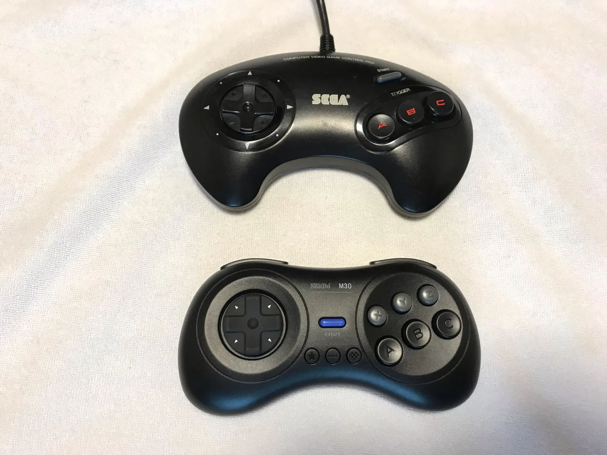 Самые лучшие контроллеры! До этого были имитирующие snes, но я в неё в детстве не играл, поэтому решил заказать более привычный сеговский! И он обалденный. В руке лежит супер удобно, все работает безупречно! С маком коннектится мгновенно. На фото сравнение с оригинальным контроллером от первого японского мегадрайва. Доставка до МО молниеносная. Около недели!