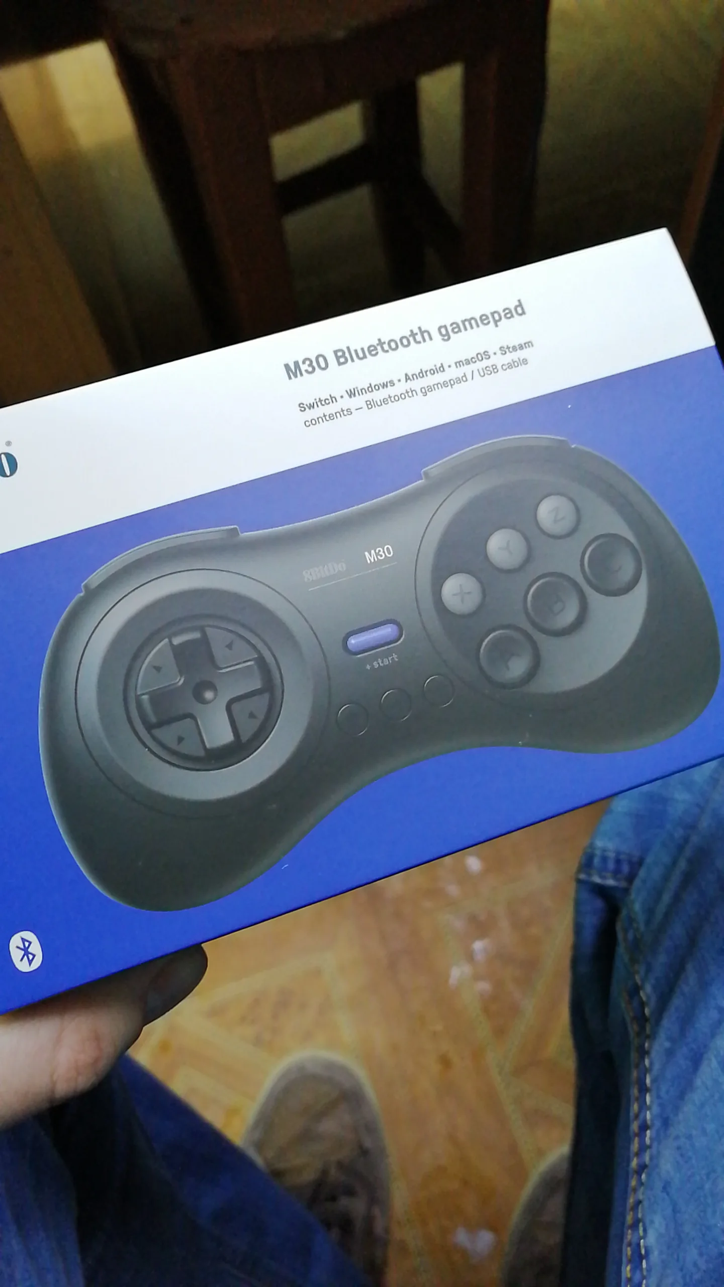 Мой второй 8 битдо M30 Genesis/Saturn type fightpad после того, как использовал предыдущий в течение года. Все кнопки и соединение BT очень хорошо реагируют без заметных задержек на входе, включая тест на кнопку turbo друг на друга. Он маленький, но очень реагирует и светится, я рекомендую получить приложение Bluetooth для автоматического подключения для Android и выполните шаги на странице кодового forum Павла, чтобы избежать проблем с входным ответом, это страница для Mupen64plus над BT. Теперь мой бой может быть более захватывающим с двумя M30s! Большое спасибо, Официальный магазин 8bitdo! (Прикрепите на изображении заднюю панель DS3 для справки по размеру)