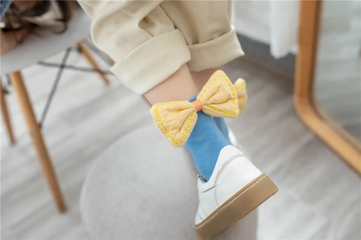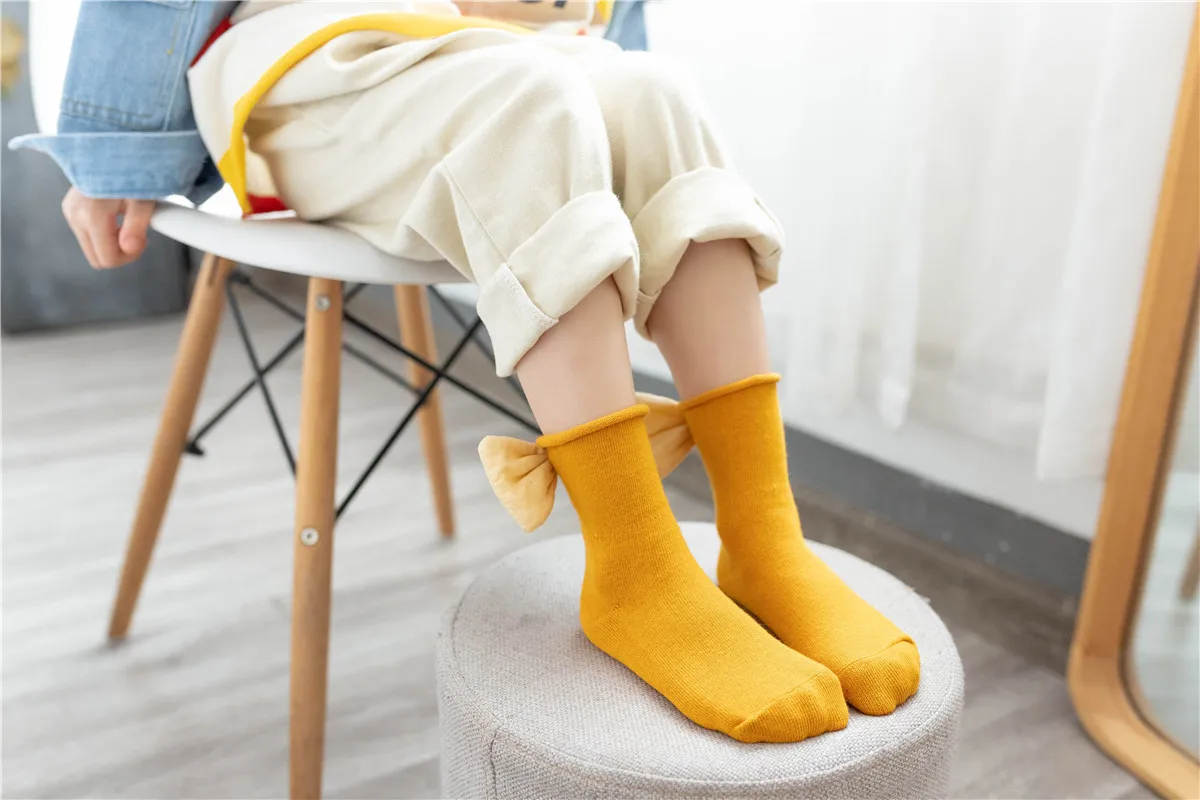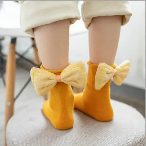 Детские носки для девочек 1-8 лет, хлопковые носки с закрученным бантом, весна-осень 2020