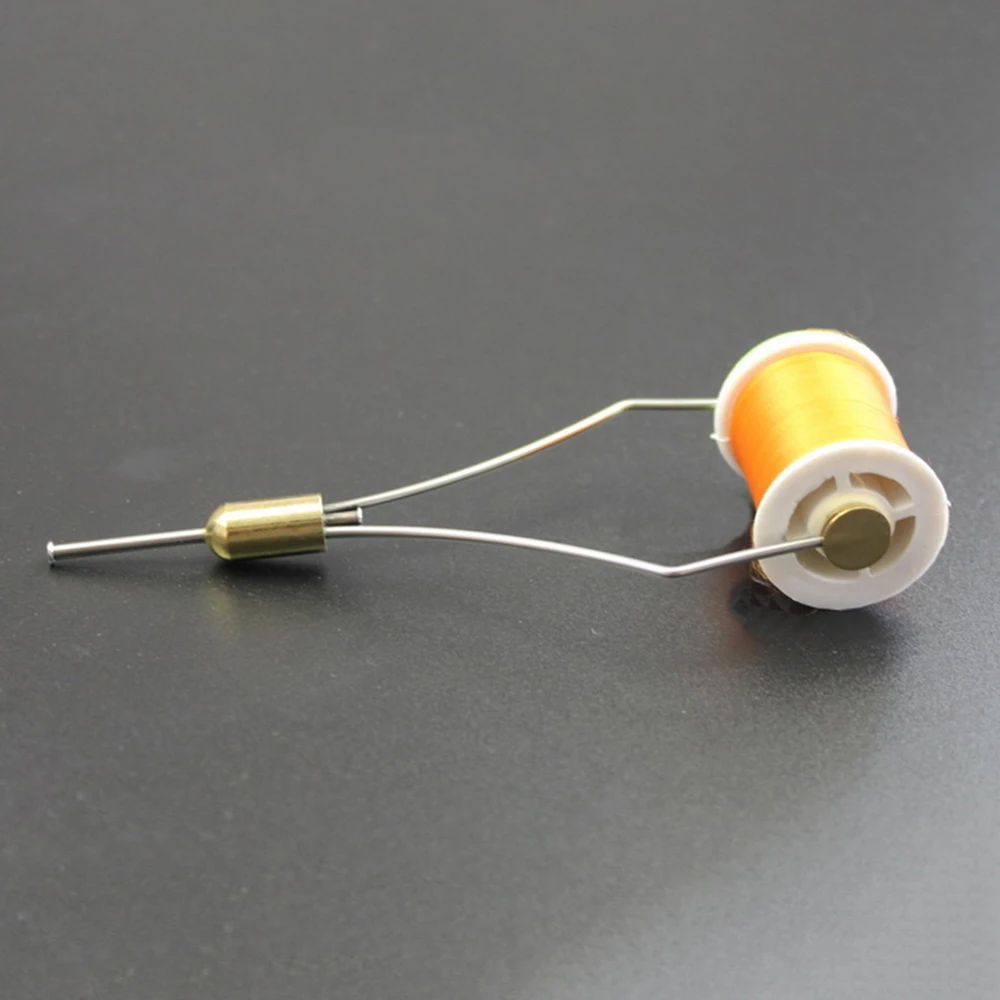 Этот инструмент удерживает бобину резьбы или нити, что позволяет легко приклеивать его к крюку и держать отходы к минимуму