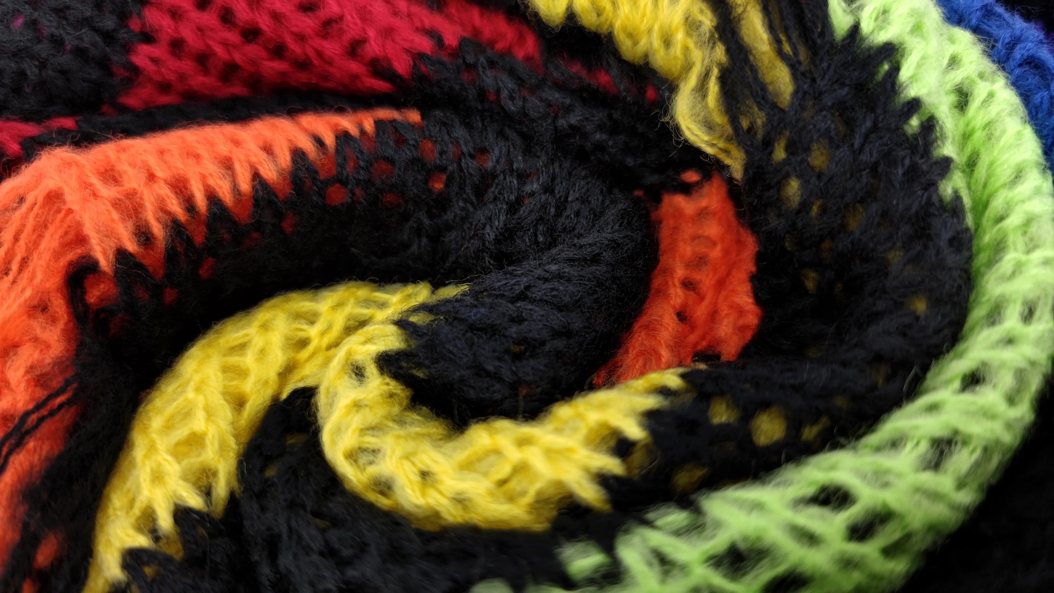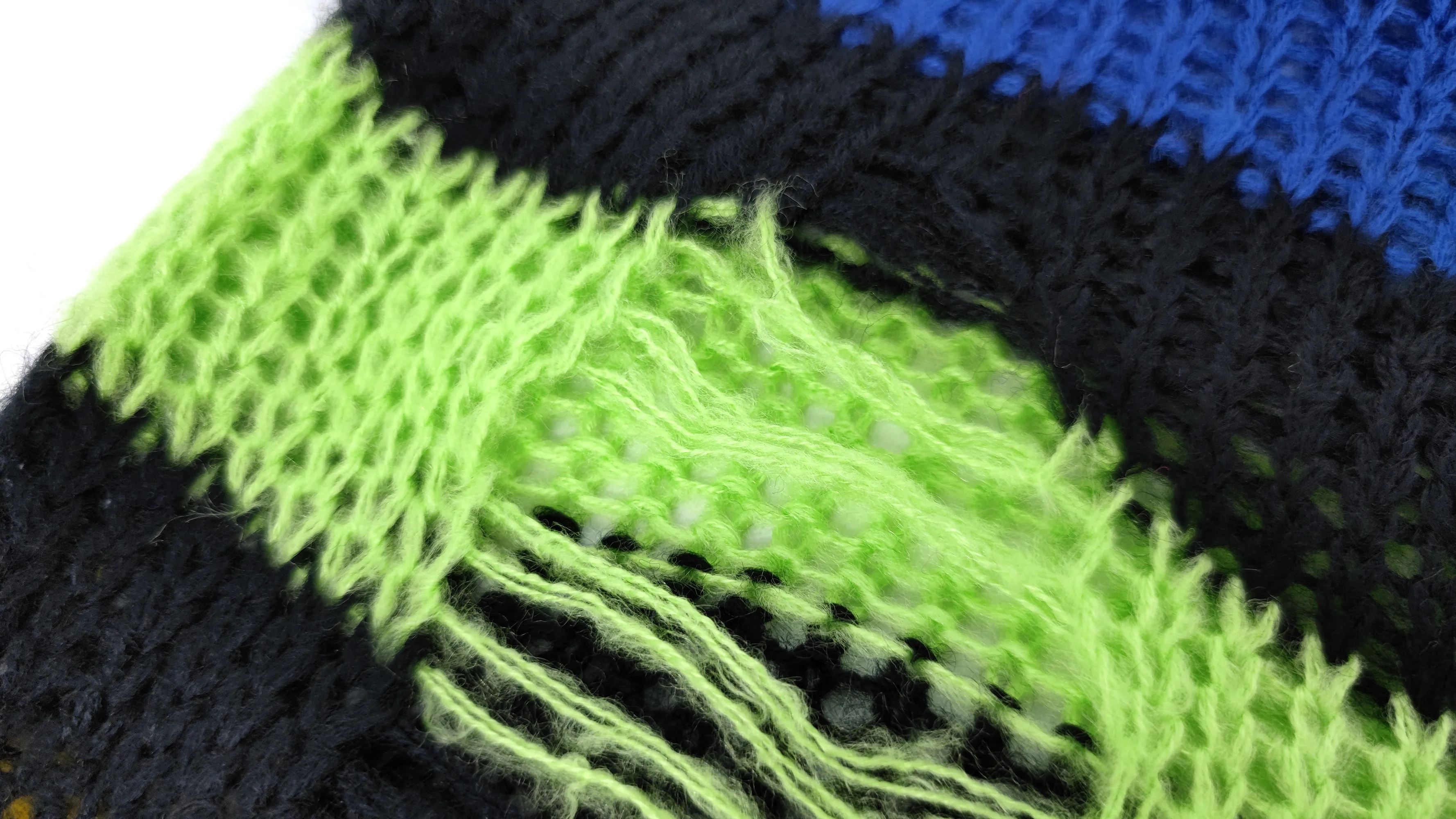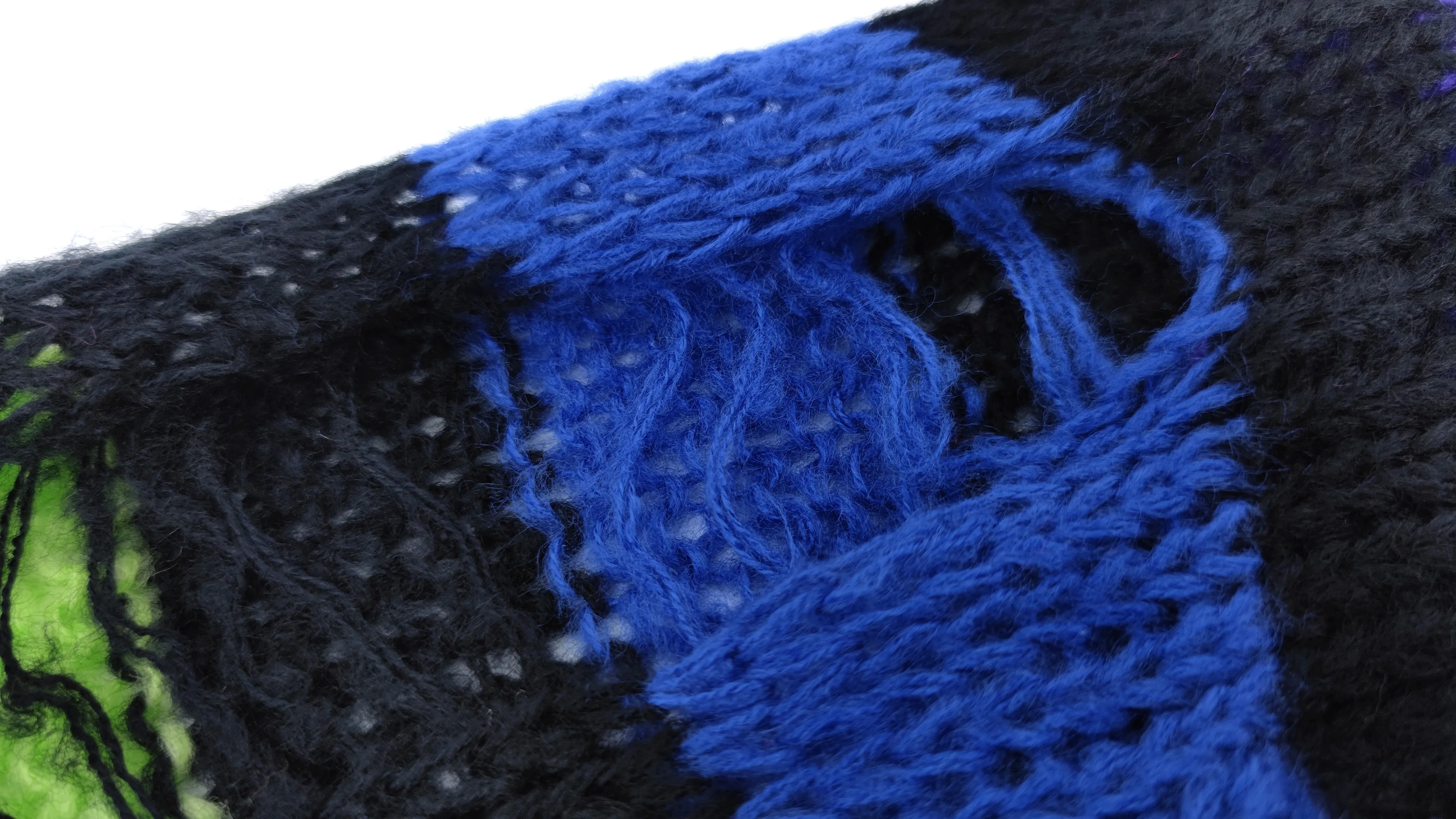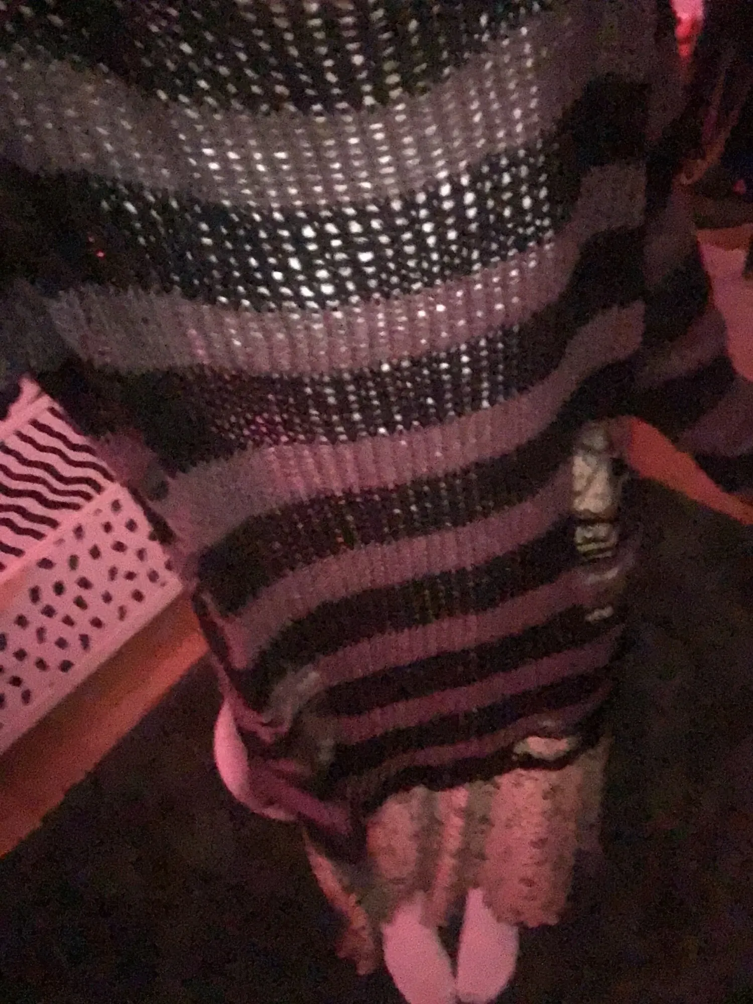 Свитер очень тонкий, но теплый вообще. И он просто огромный, на рост 164 до колена и даже немного с плеч спадает. Выглядит прикольно, дыры провязаны адекватно - дальше не распустятся. Под него надо что-то надевать - прозрачный