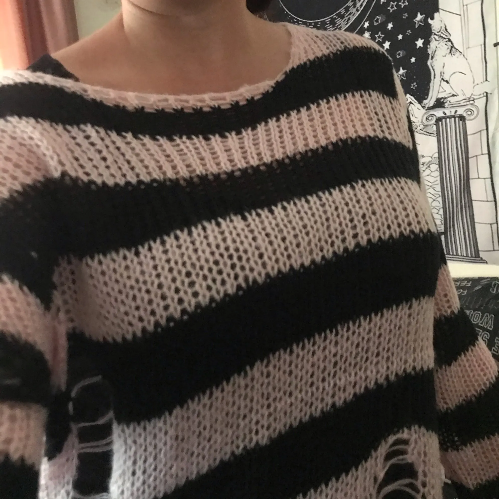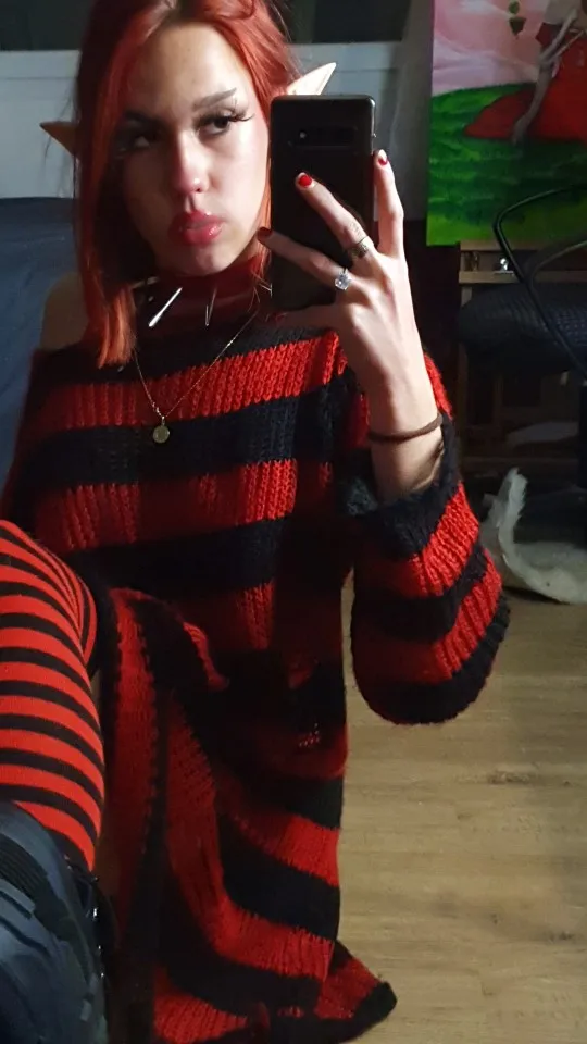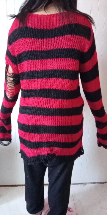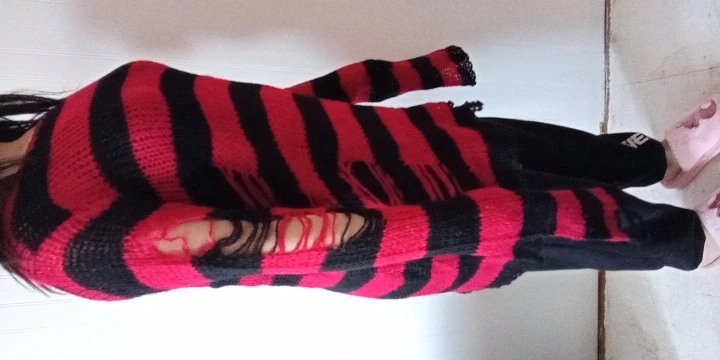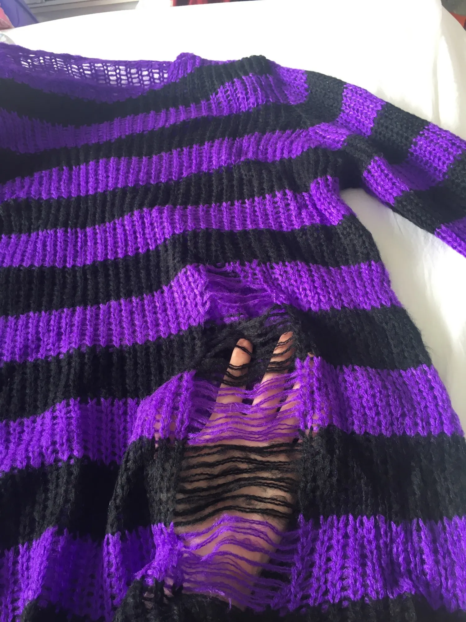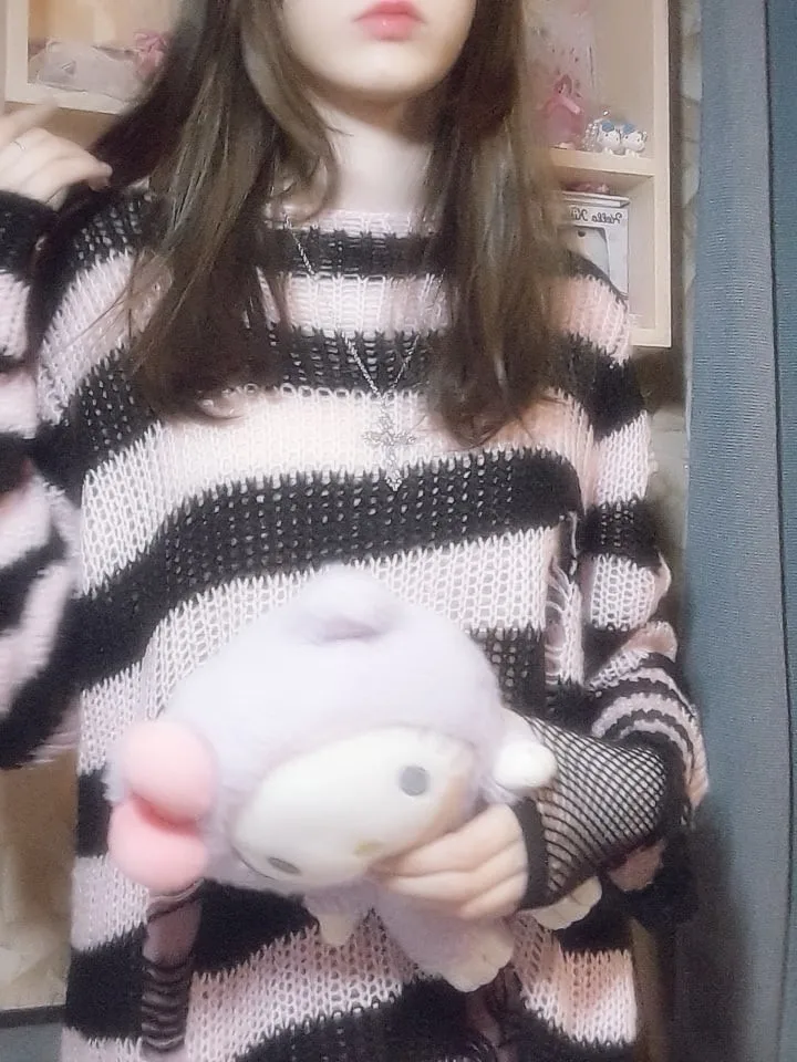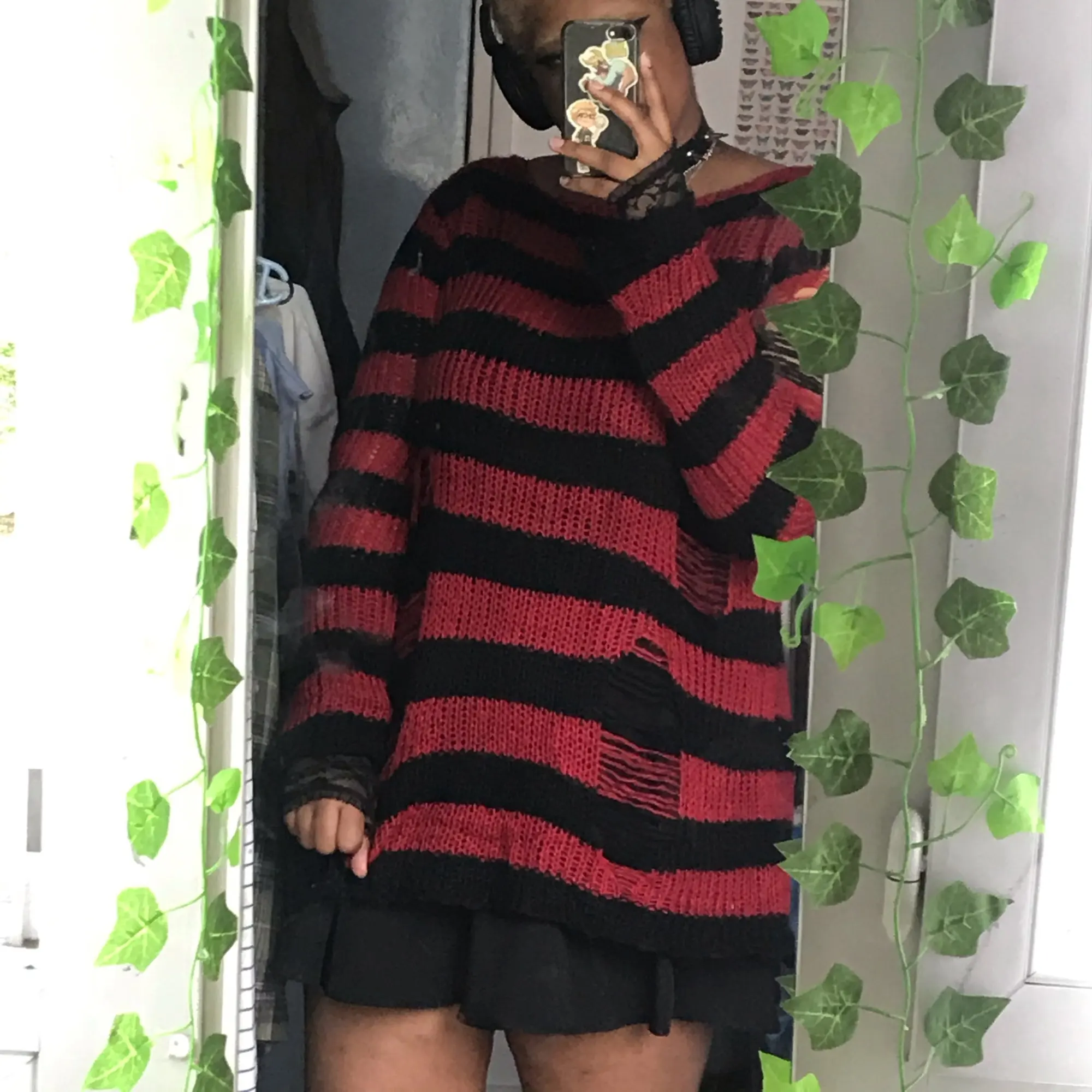 Женский свитер в стиле панк-готика, свободный тонкий черный джемпер в полоску с вырезами, в стиле рок, лето 2020