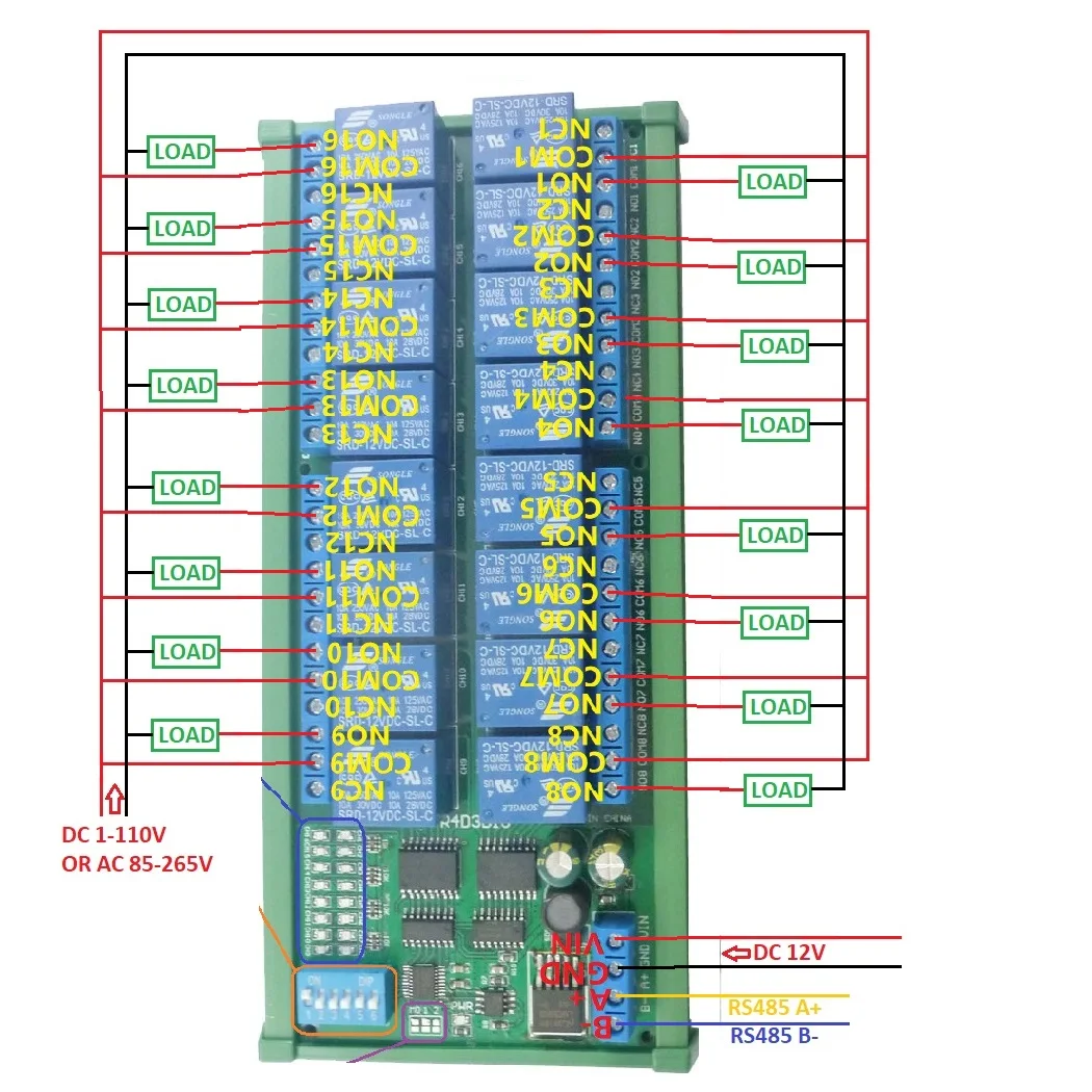 Название продукта: релейный модуль Modbus RTU UART DIN35 C45, 16 каналов, релейный модуль RS485, 12 В постоянного тока, панель управления для PLC PTZ-камеры, светодиодный мотор