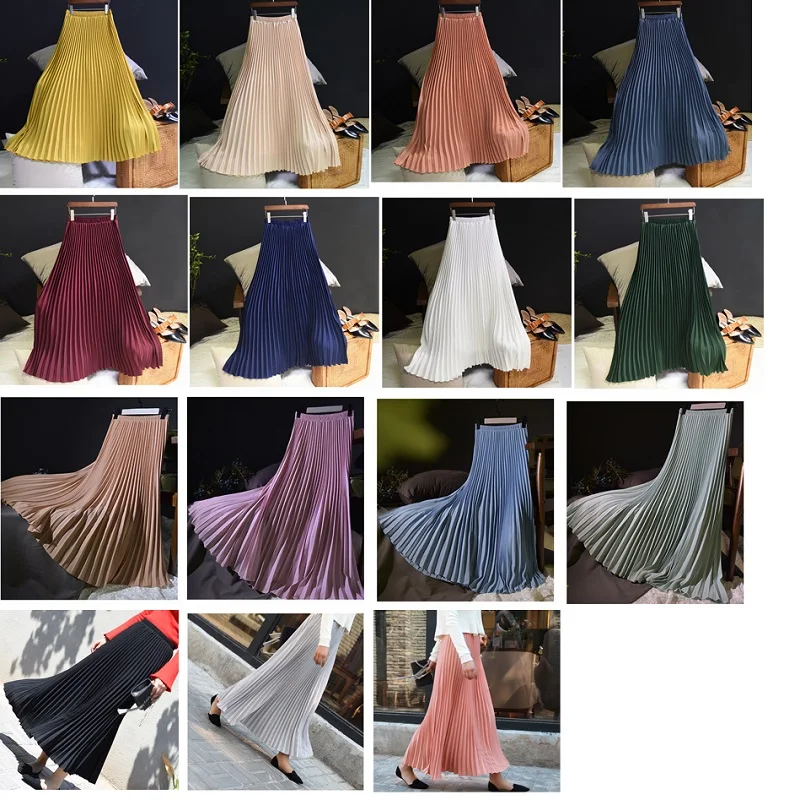 Женская плиссированная юбка-макси, длинная сетчатая юбка-трапеция с высокой талией и подкладкой, длинная эластичная юбка длиной 90 см