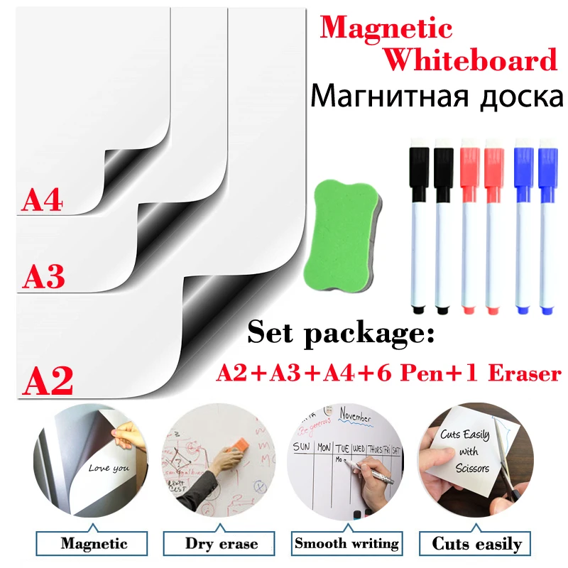 Эта плата магнитная, автоматически прилипает к металлической поверхности. Нужна лента для деревянной поверхности и стен. Благодаря гибкому материалу мы скручиваем его и упаковываем в круглую трубку. Разгладьте вручную, прежде чем приклеивать к металлической поверхности. Посылка: A2: мм x мм/A3: мм x мм/A4: мм x мм/6 маркировочных ручек/1 ластик