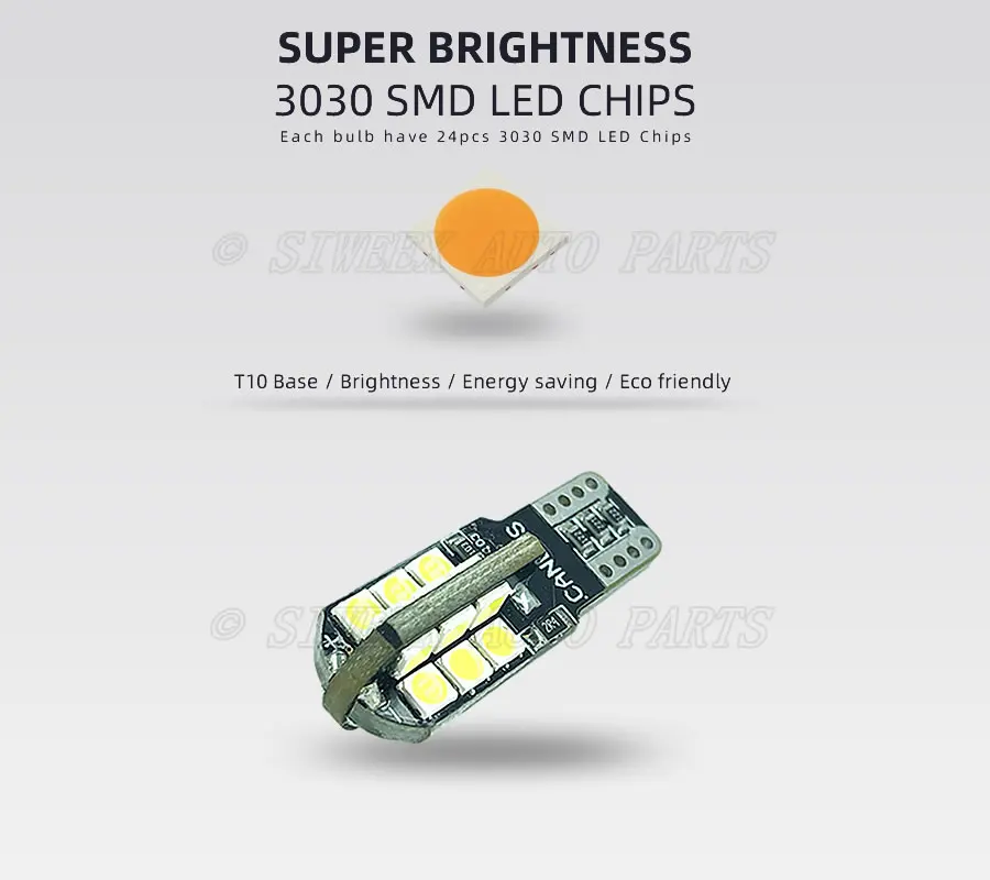 1 шт. W5W T10 24 SMD 3030 автомобиль светодиодный светильник Canbus Error Free парковка Лампы для чтения номерной знак лампы авто-стайлинг белый 12V