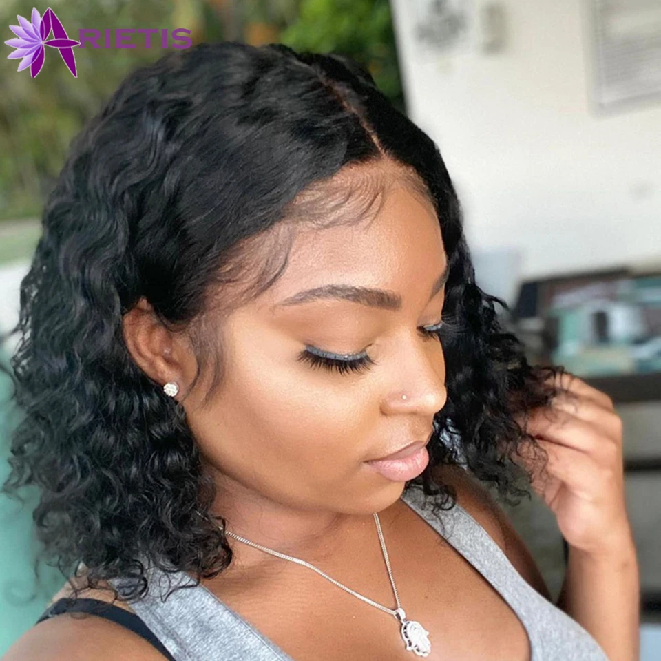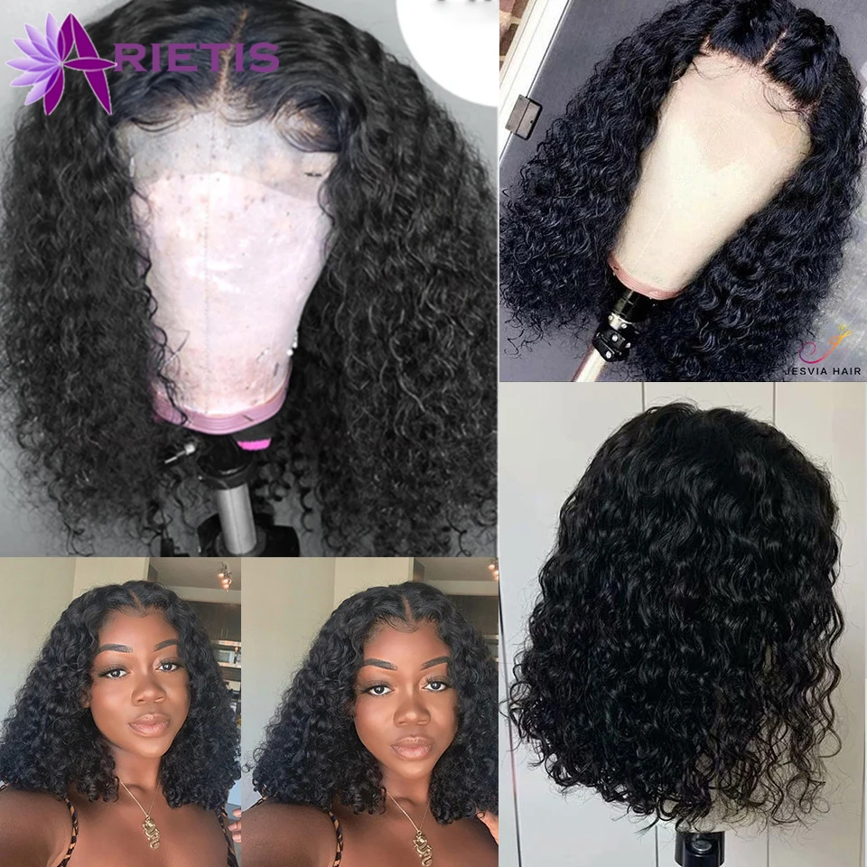 Вьющиеся короткие парики из человеческих волос на сетке спереди для черных женщин, парик на сетке 4x4, вьющийся парик на сетке, предварительно выщипанные Детские волосы, волосы без повреждений