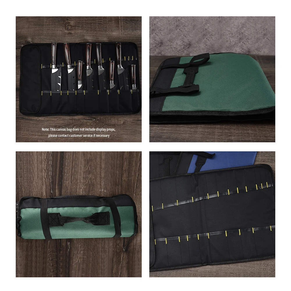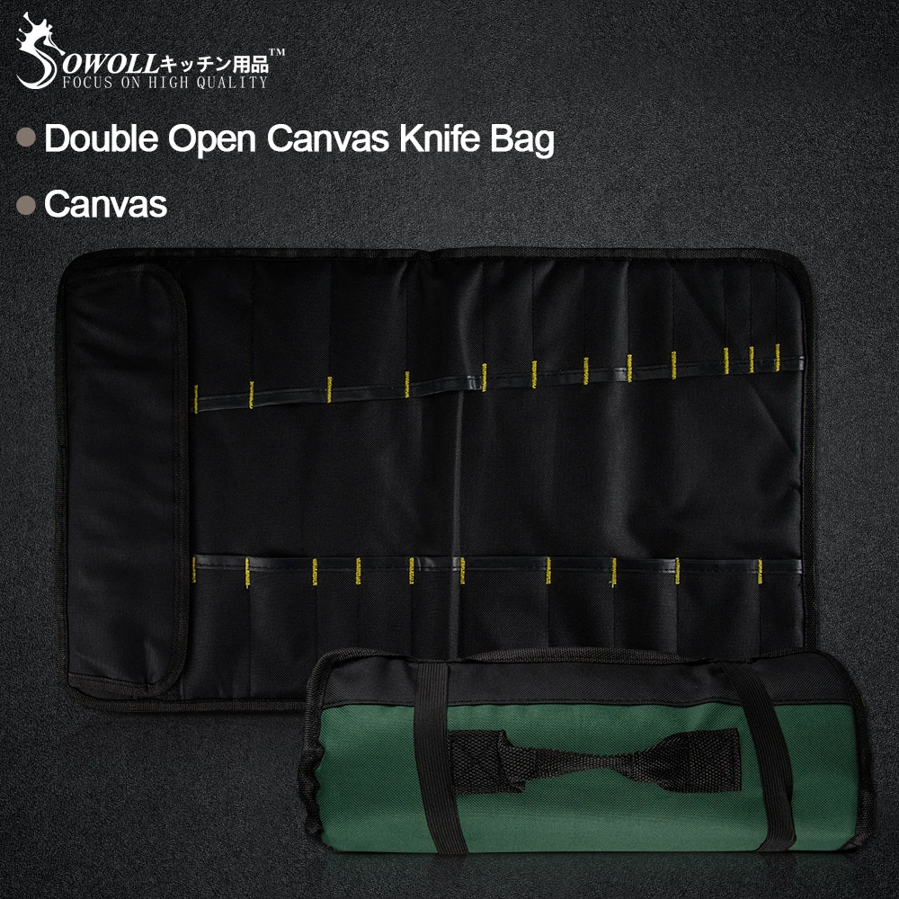 Сумка-рулон Sowoll для шеф-повара, кухонная чехол для ножей, Холщовая Сумка, чехол для переноски, ножи из нержавеющей стали, зеленый, синий, портативный, прочный, с карманами для хранения