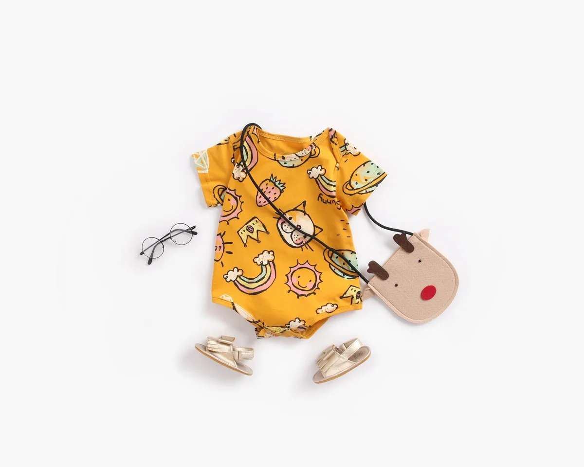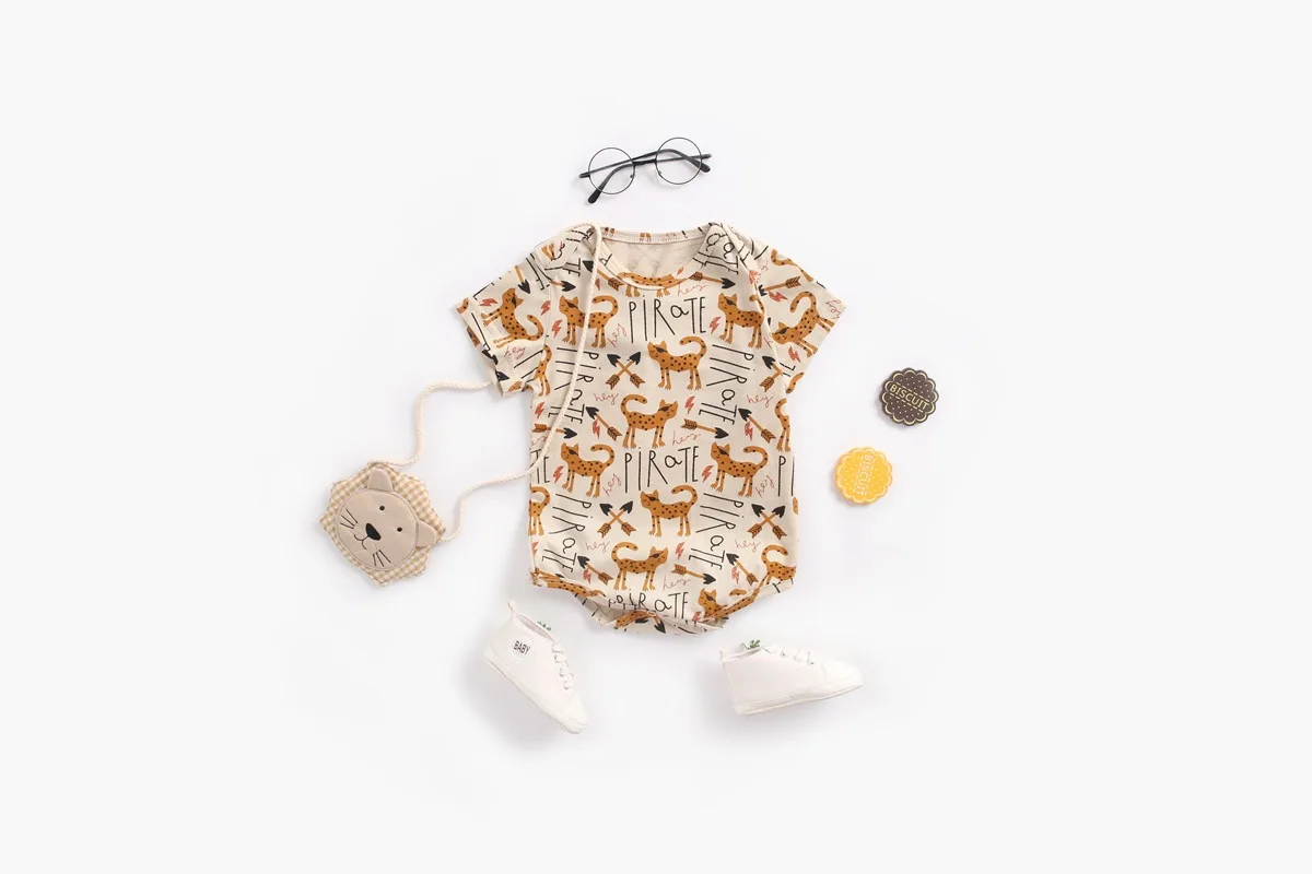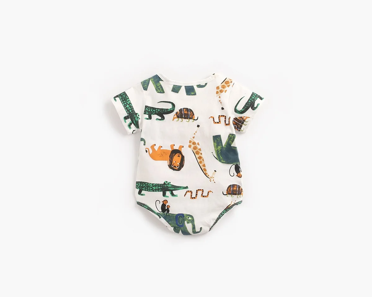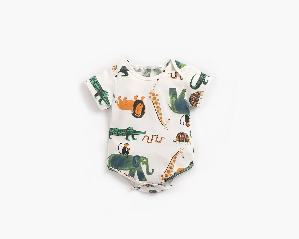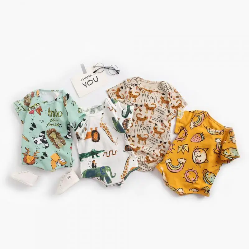 Одежда для новорожденных; Сезон лето; Новинка; Боди для маленьких мальчиков с короткими рукавами; Милый детский комбинезон с рисунком животных; Одежда из чистого хлопка для девочек