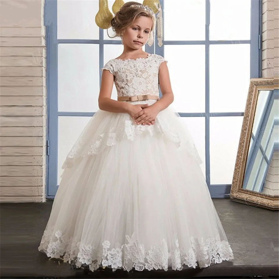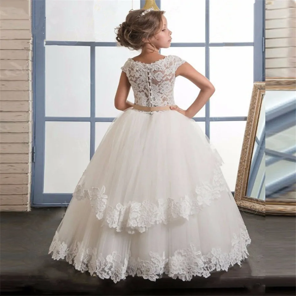 Бальное платье, Цветочное платье для девочек, кружевные аппликации,...