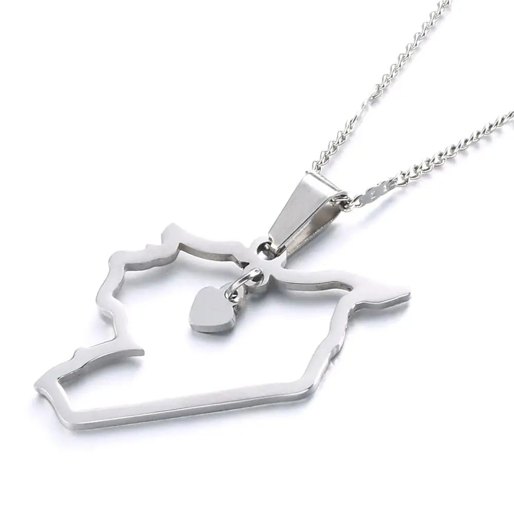 Модные ожерелья-подвески из нержавеющей стали в виде карты для сирийцев, ювелирные изделия с цепочкой в виде сердца