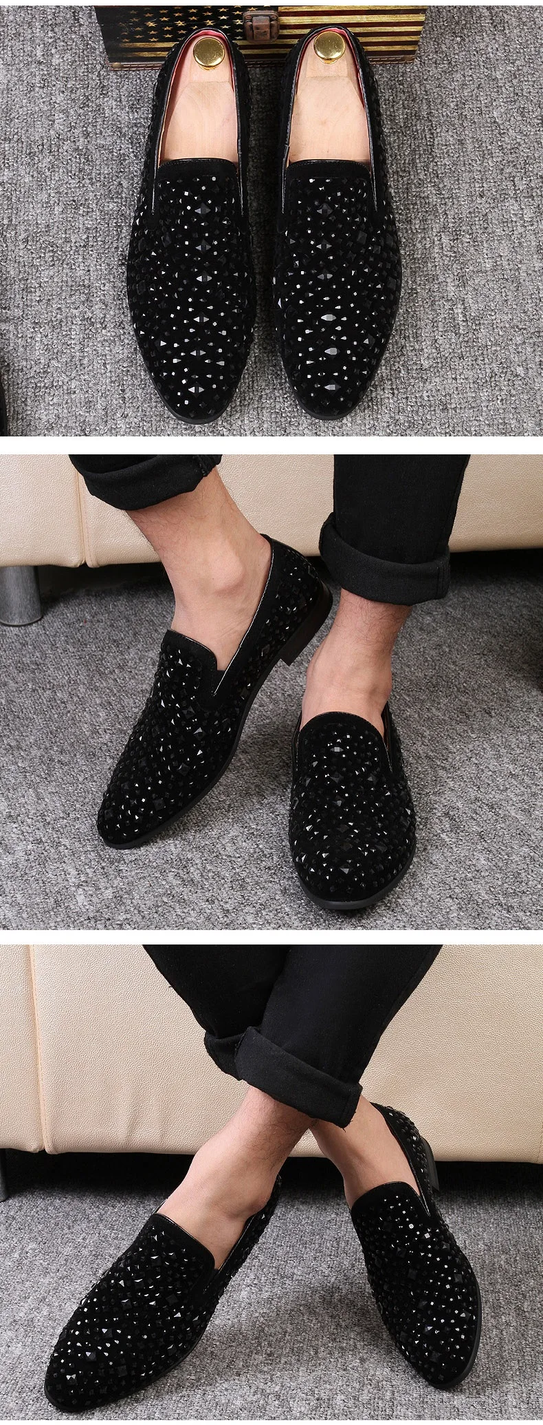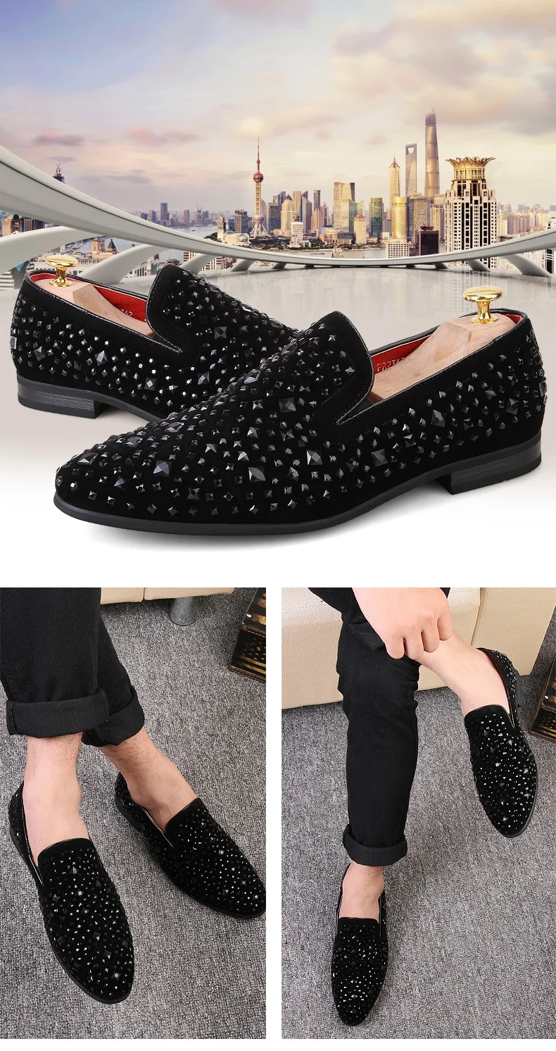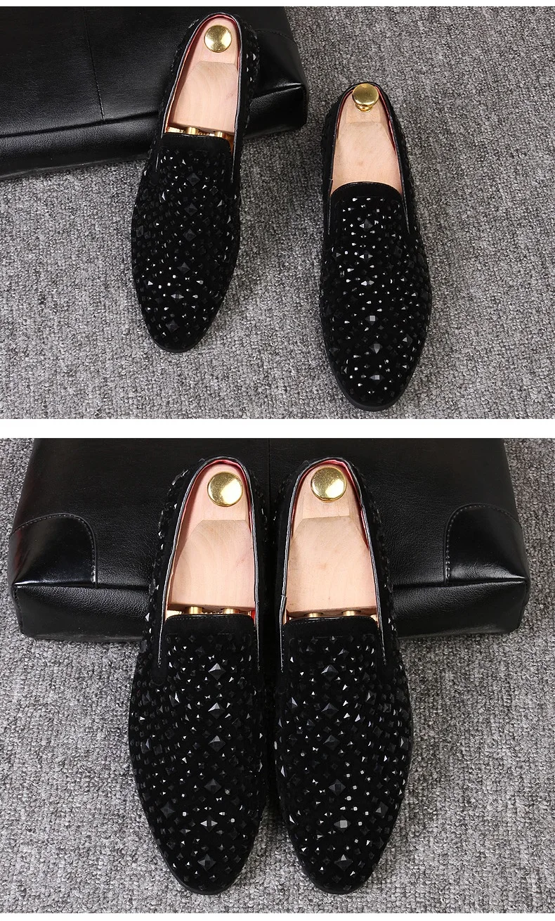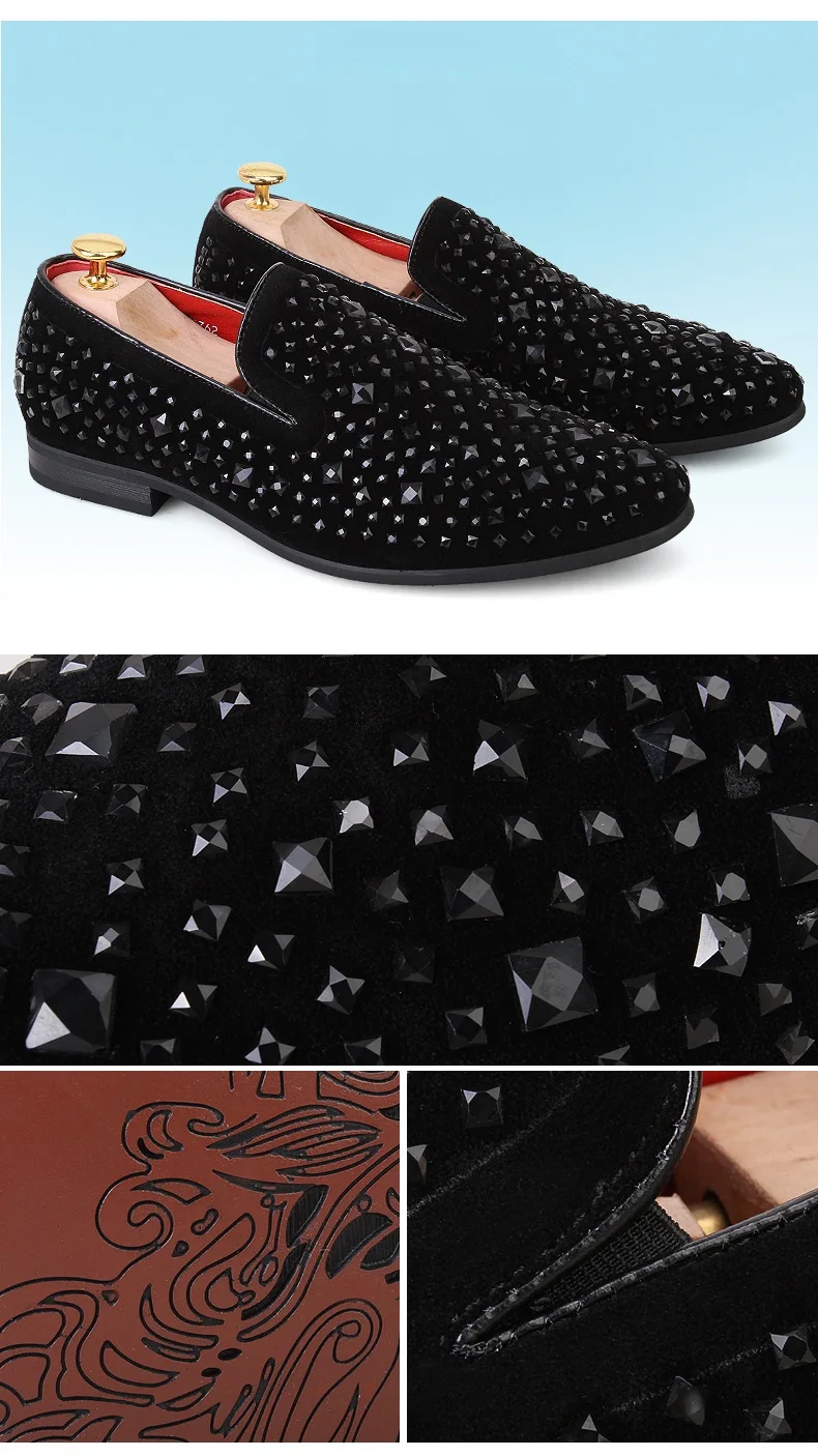 Благородные черные мужские классические туфли стразы, бархатные Рос...