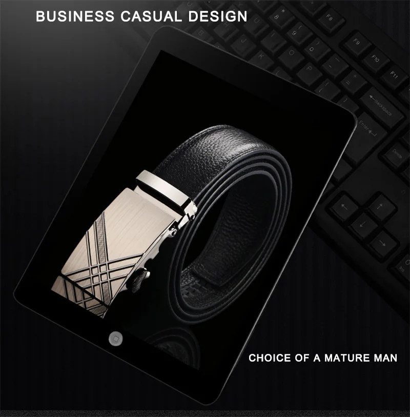 Ремень мужской из натуральной кожи, с автоматической пряжкой