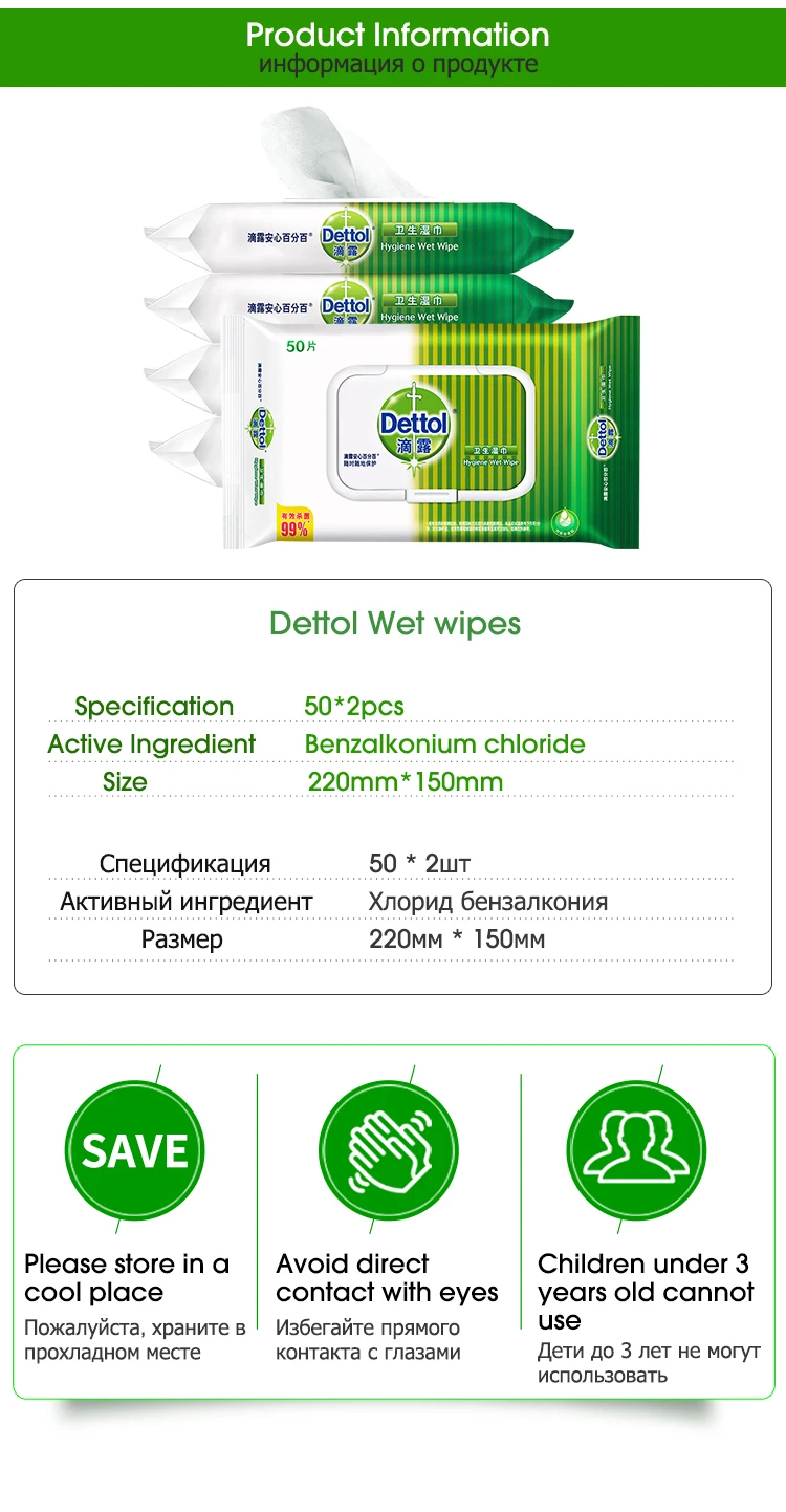 Dettol 50 шт. * 2 гигиенические влажные салфетки одноразовые кожу лица и тела персональные очищающие салфетки для очистки Уход за здоровьем, способный преодолевать Броды для взрослых детей