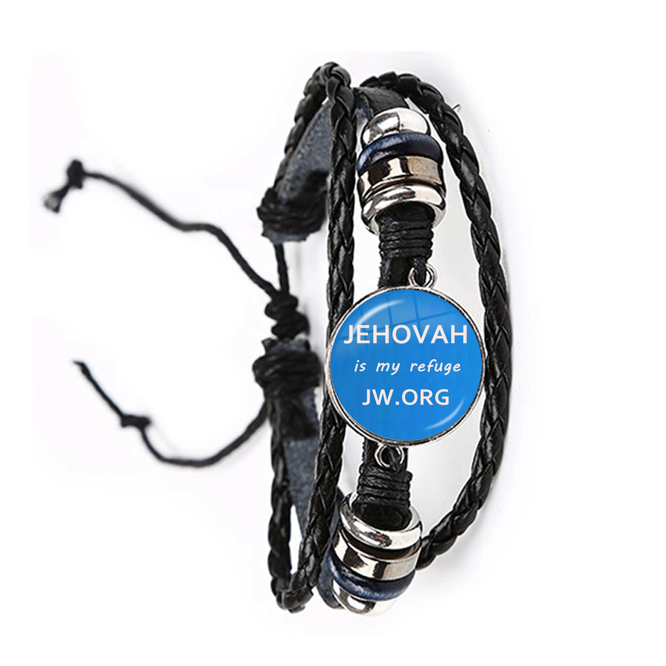 Браслет JW.ORG в стиле панк, стеклянный кабошон, черныйкоричневый, кожаный, ювелирные изделия, подарок для католиков