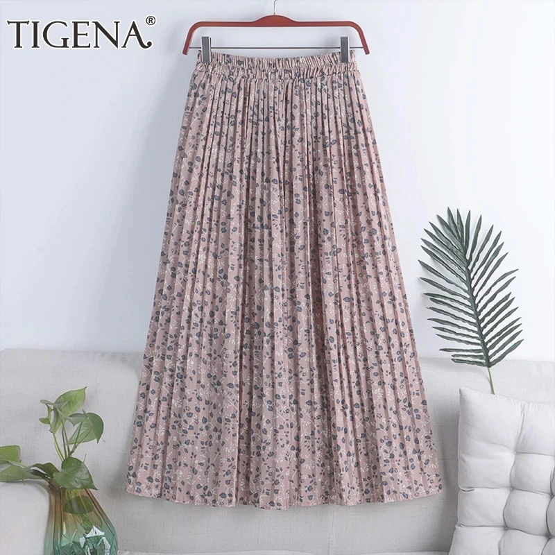 Женская шифоновая юбка TIGENA, длинная Плиссированная Юбка А-силуэта с цветочным принтом, с высокой талией, для отдыха, лето 2021