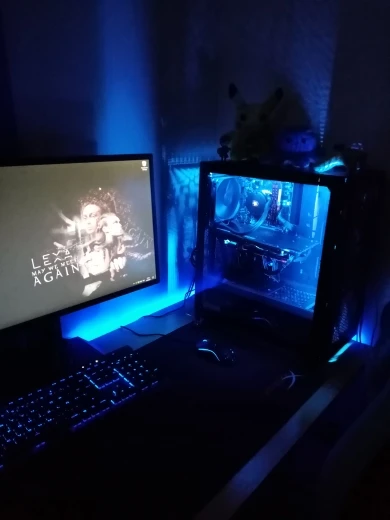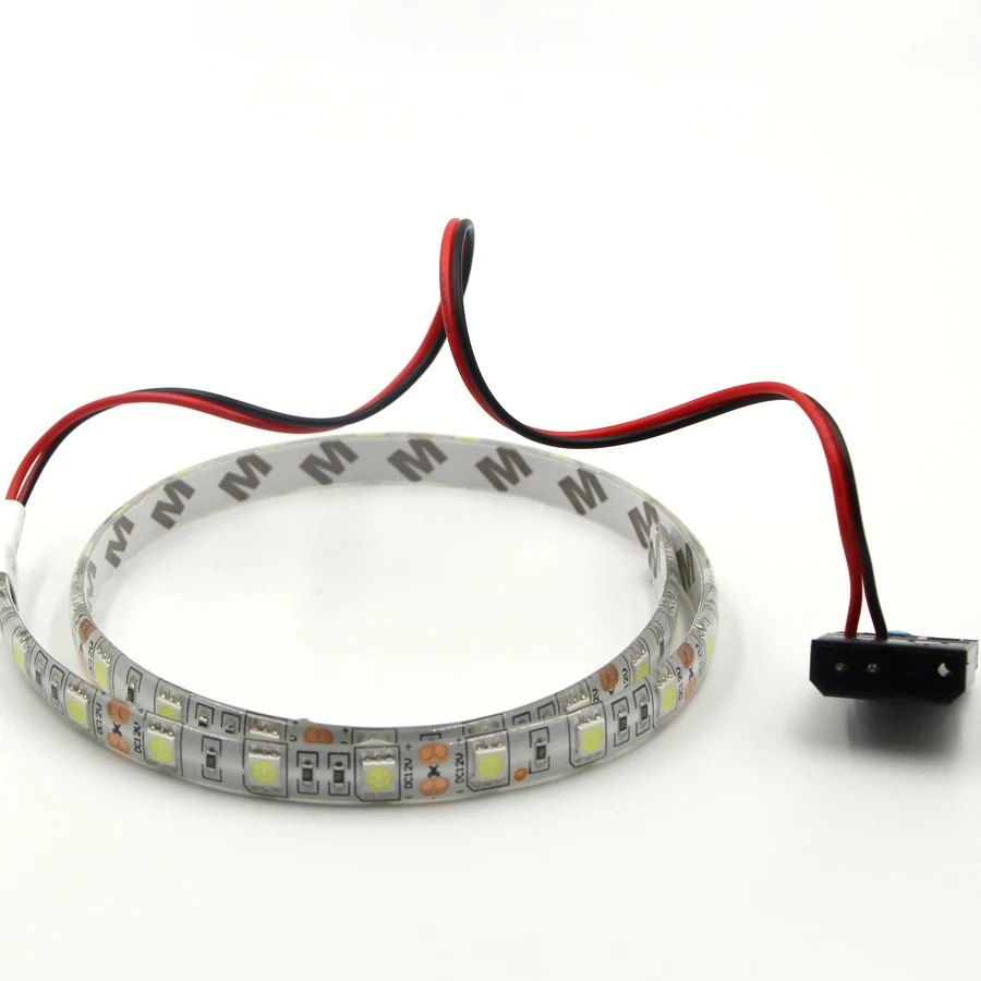 Светит хорошо, подключается по molex. Приятный тёплый свет. Для рассеивания света поместил в белый пластиковый кабель-канал 10x10 мм (промрукав), но лучше чуть больше.