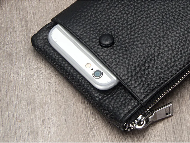Мужской Длинный кошелек, из натуральной кожи, тонкий мягкий кошелек на молнии, с отделением для карт, для телефона, многофункциональный клатч большой емкости