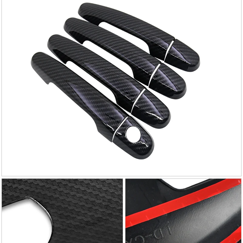 4 шт. глянцевый черный чехол из углеродного волокна для дверных руч...