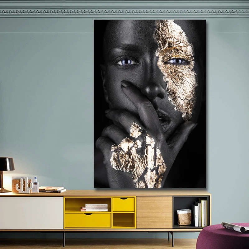 Черные женщины руки и золотые ювелирные изделия холст печать плакат...