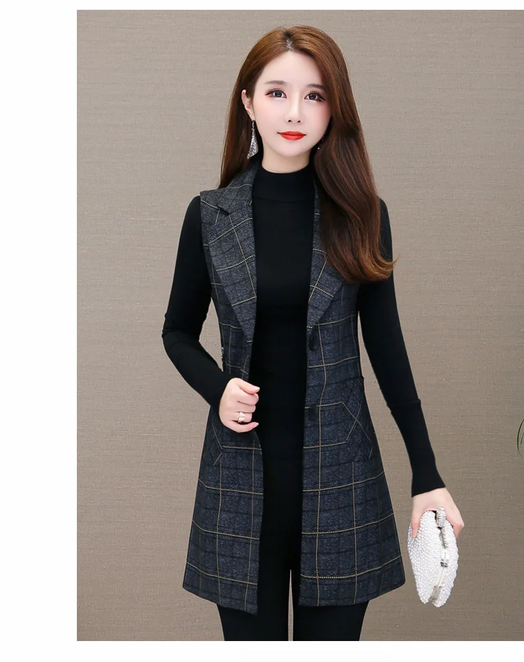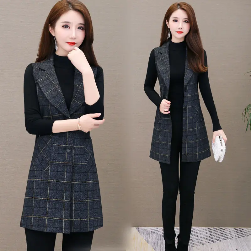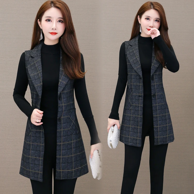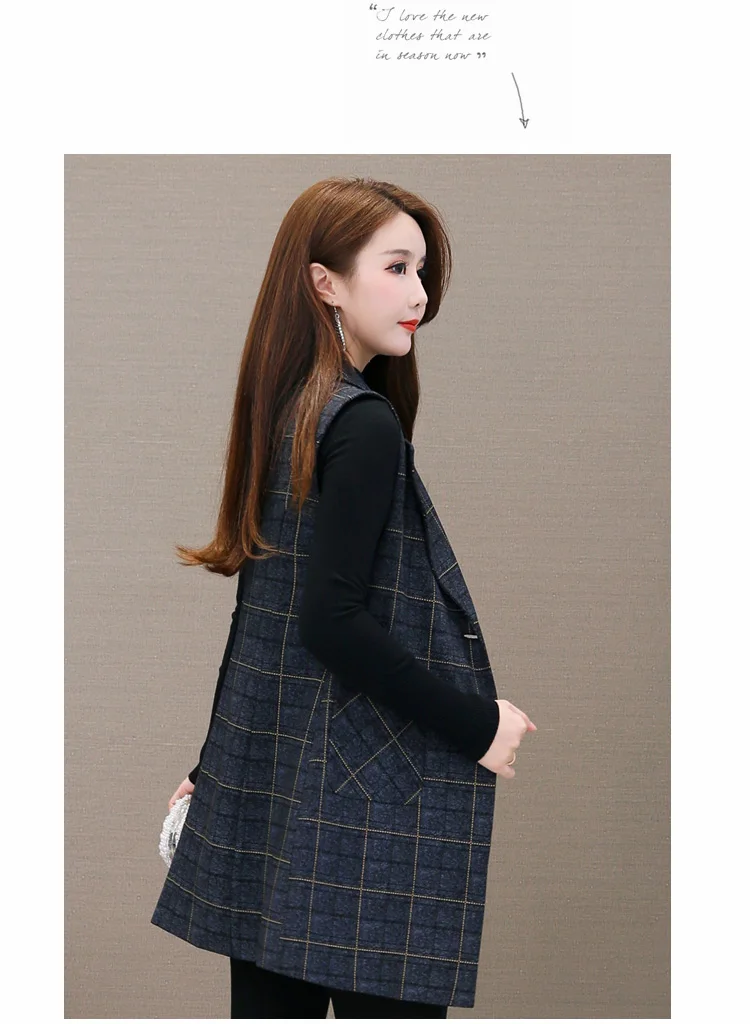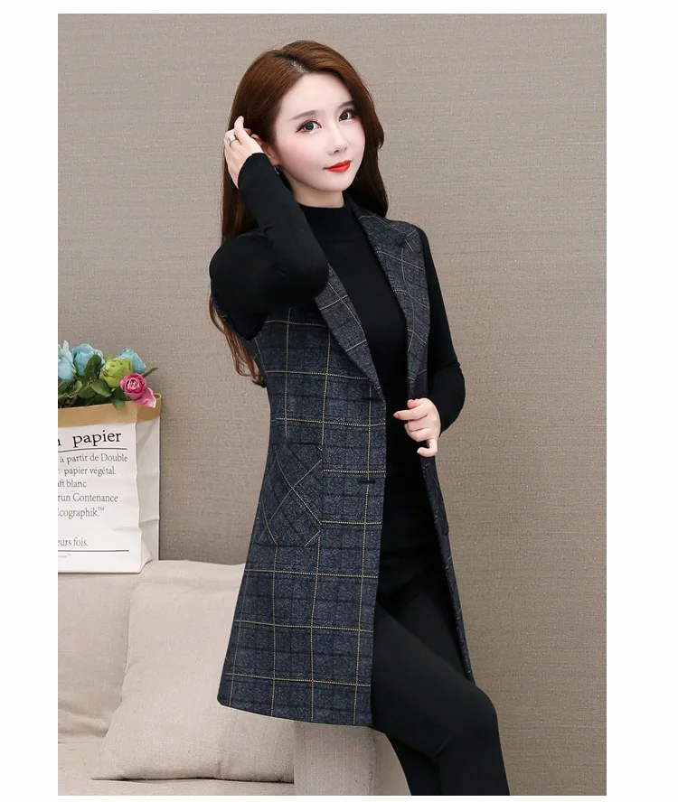 Женский клетчатый костюм размера плюс 5XL 4XL 3XL на осень и зиму, длинный жилет без рукавов в Корейском стиле, Офисная Элегантная куртка, 2020