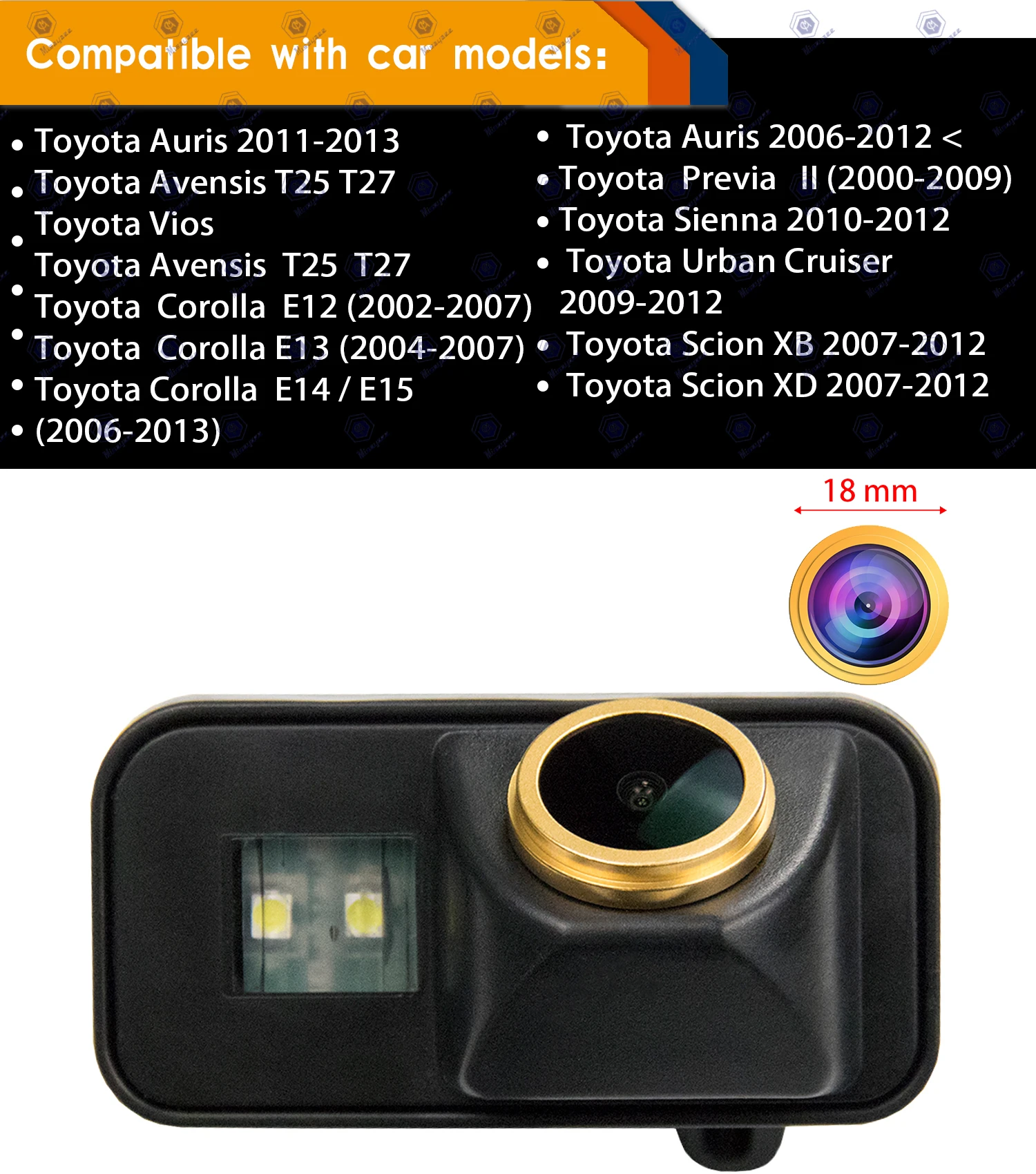 Золотая камера заднего вида HD 1280x720p, камера заднего вида для Toyota Corolla Tarago Previa Wish Aiphard