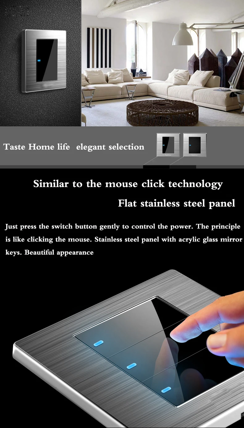Настенный выключатель из нержавеющей стали, для ЕС, Великобритании,...