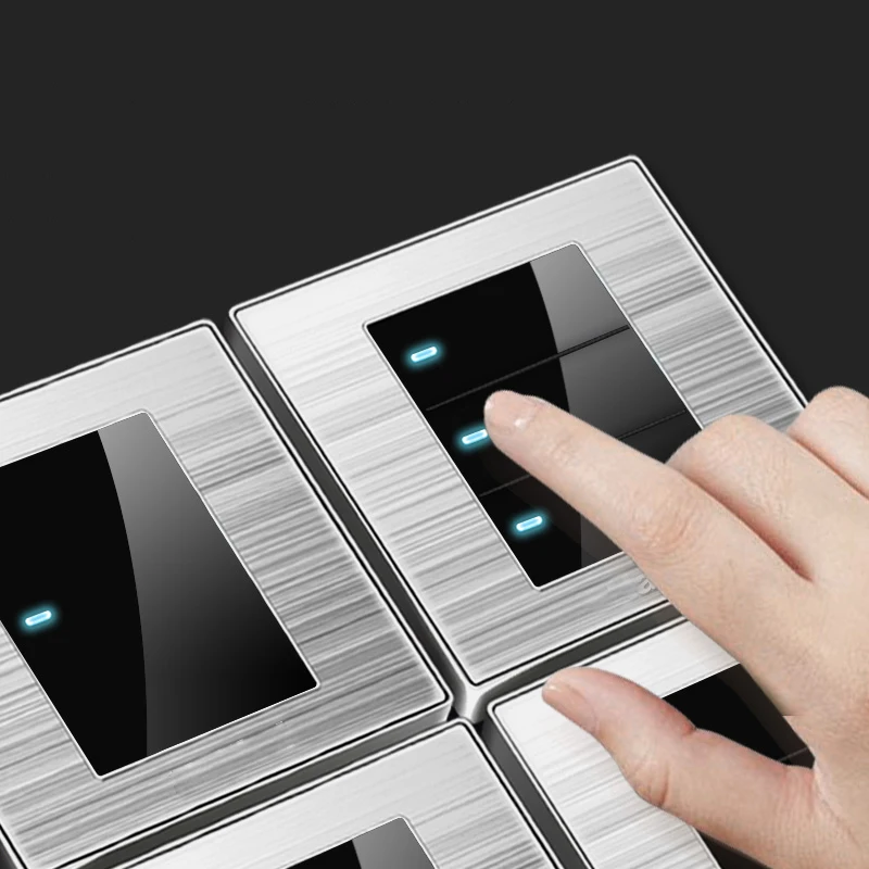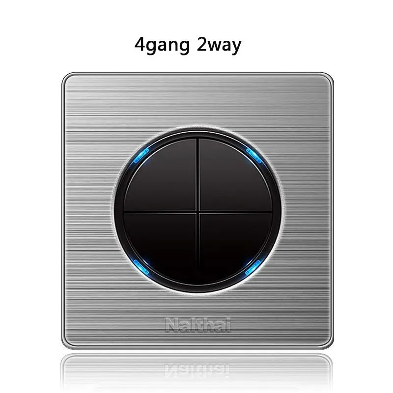 86 Тип 1 2 3 4 банды 1 2way серебристый алюминиевый сплав панель Переключатель Розетка светодиодный в Северной Европе промышленности немецкий английский французский светильник розетка