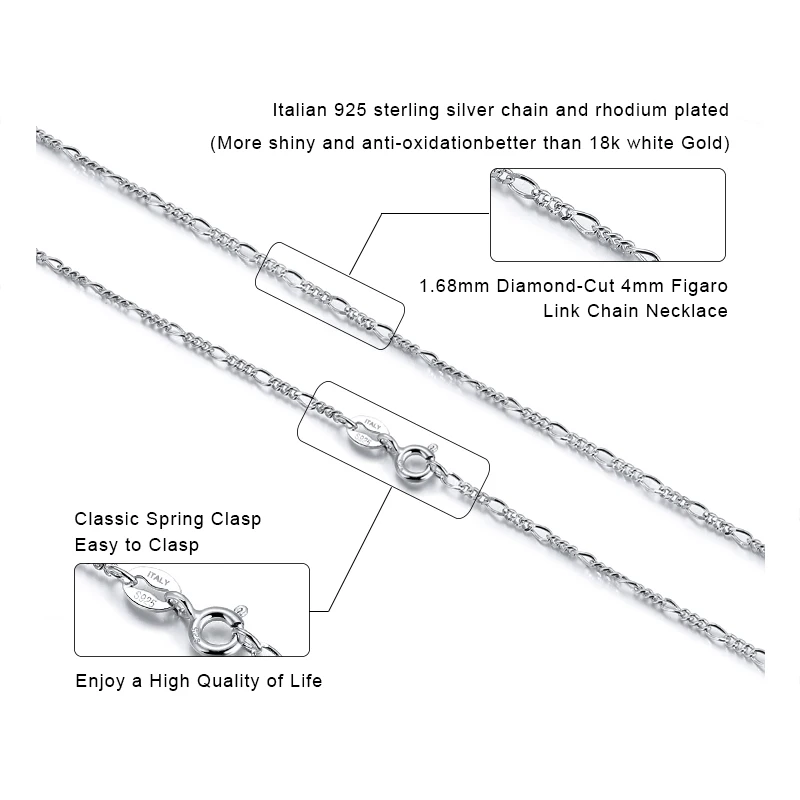 Material925 Sterling Silver ,Figaro Link Chain Necklace