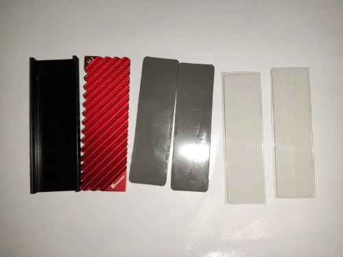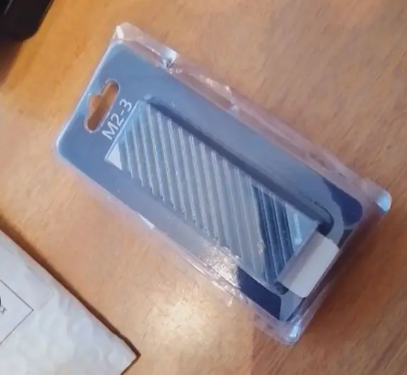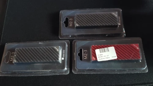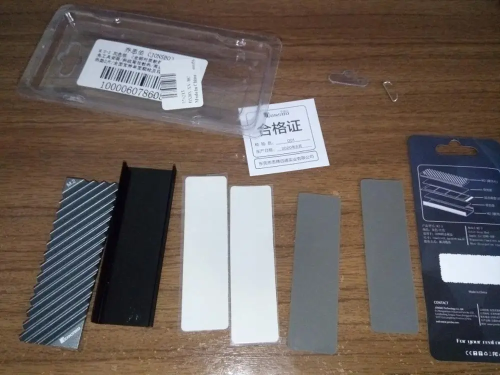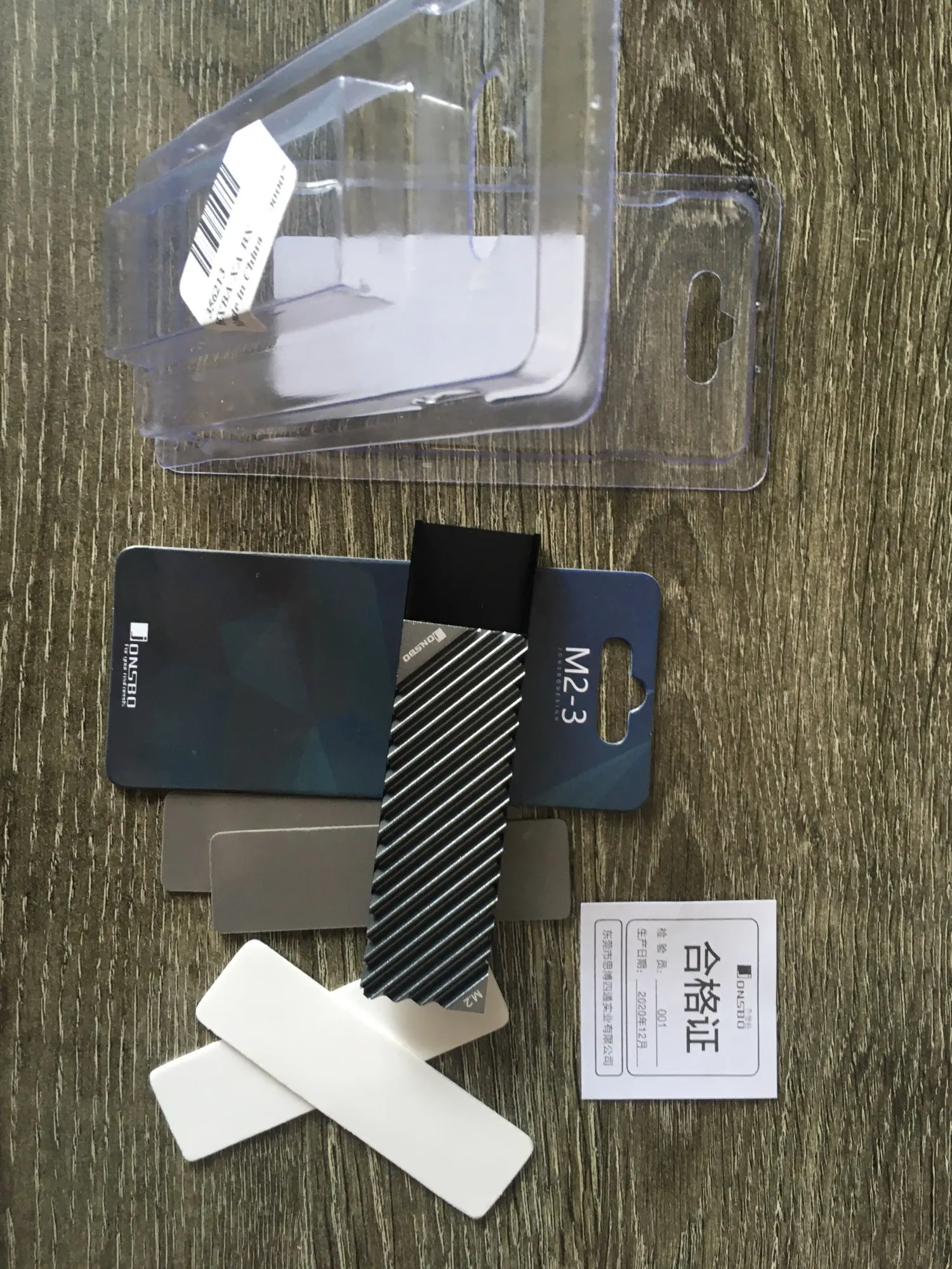 Хороший радиатор, он упал на 10 ° C в Отдых на 500 Гб Western Digital M.2 и при напряжении не превышает 56. Он сделан из алюминия и поставляется с двумя термоподушками. Легко надеть Чтобы положить клей пришел в простой сумке, но в идеальном состоянии