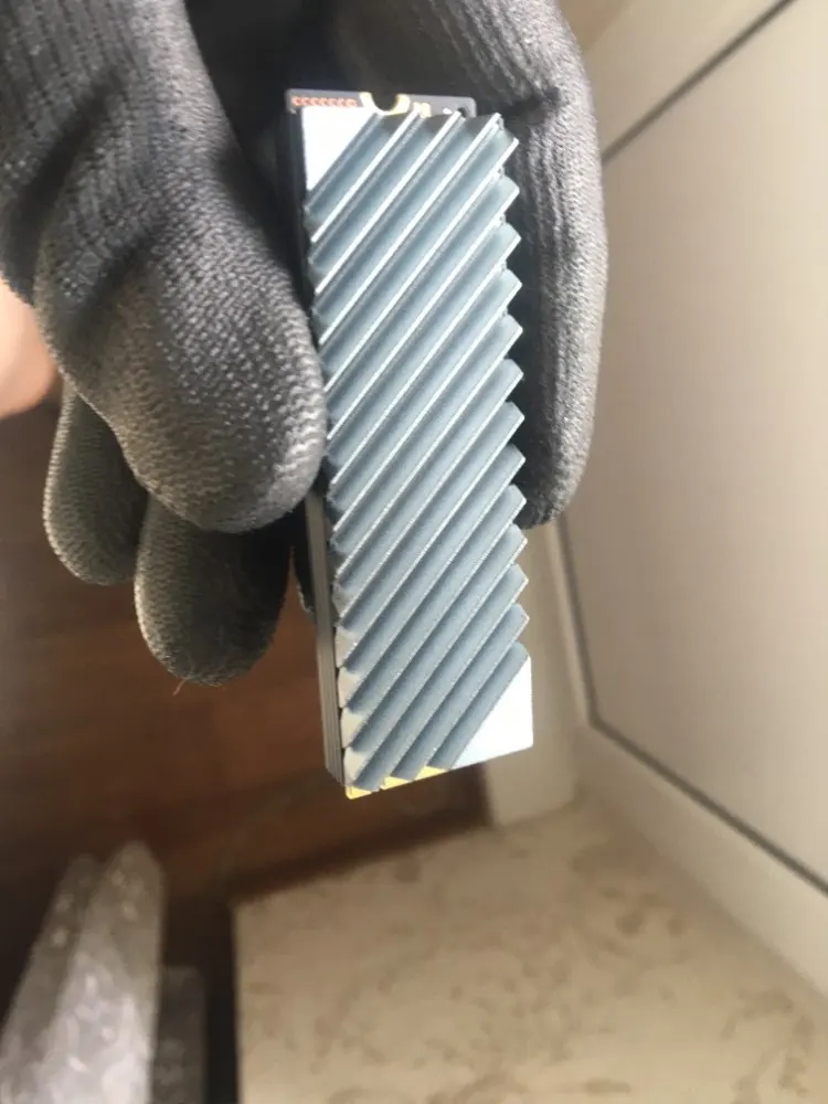 Доставка 9 дней. Сделан аккуратно, края ровные. В комплекте два набора термопрокладок. На Samsung 960 pro 512 встал отлично. Температура в простое 44 градуса. В CrystalDiskMark 8.0.1 при записи в 32 потока до 82 градусов - все равно тротлинг, но не такой ужасный, как без радиатора. В итоге - неплохой радиатор для обычных ссд. Для экстремальных задач мало.