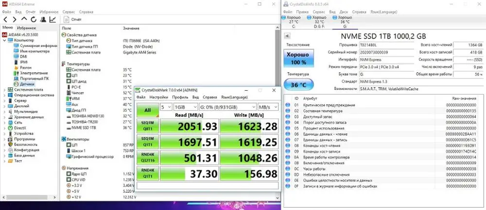 SSD M.2 NVMe A-DATA XPG SX8100(512 Gb) температура с 41 градуса снизилась на 9 градусов.....до 32. Использовал 3 термопрокладки из четырёх идущих в комплекте. Белую и две серых. Важно учитывать, что фиксировать крышку охлаждения пришлось путём защёлкивания, а не задвижением по направляющим пазам ( темопрокладка начинает собираться в комок). Покупкой доволен. Шла в Екб 40 дней.