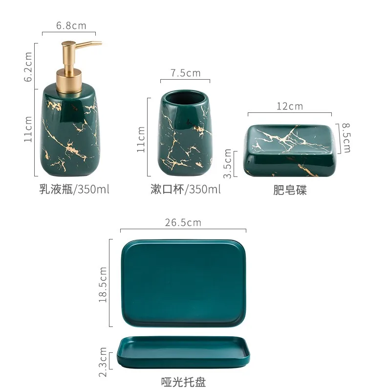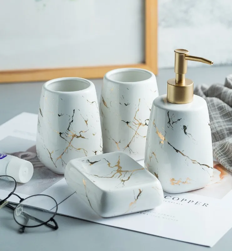 Набор для мытья в ванной, 4 в 1, керамический дозатор мыла с мрамор...