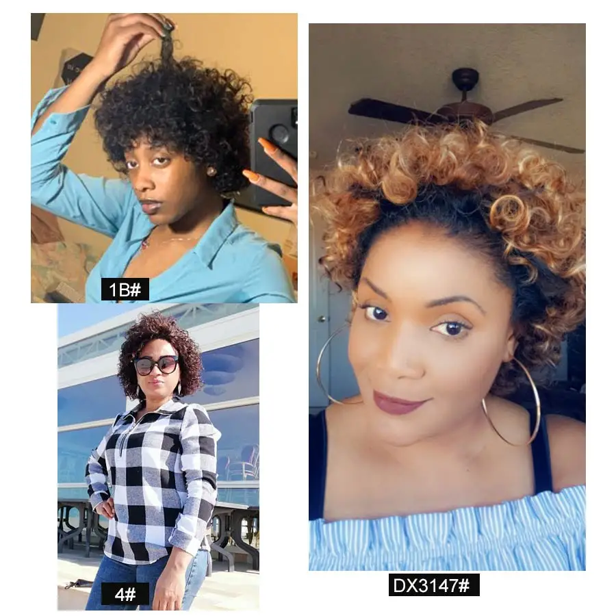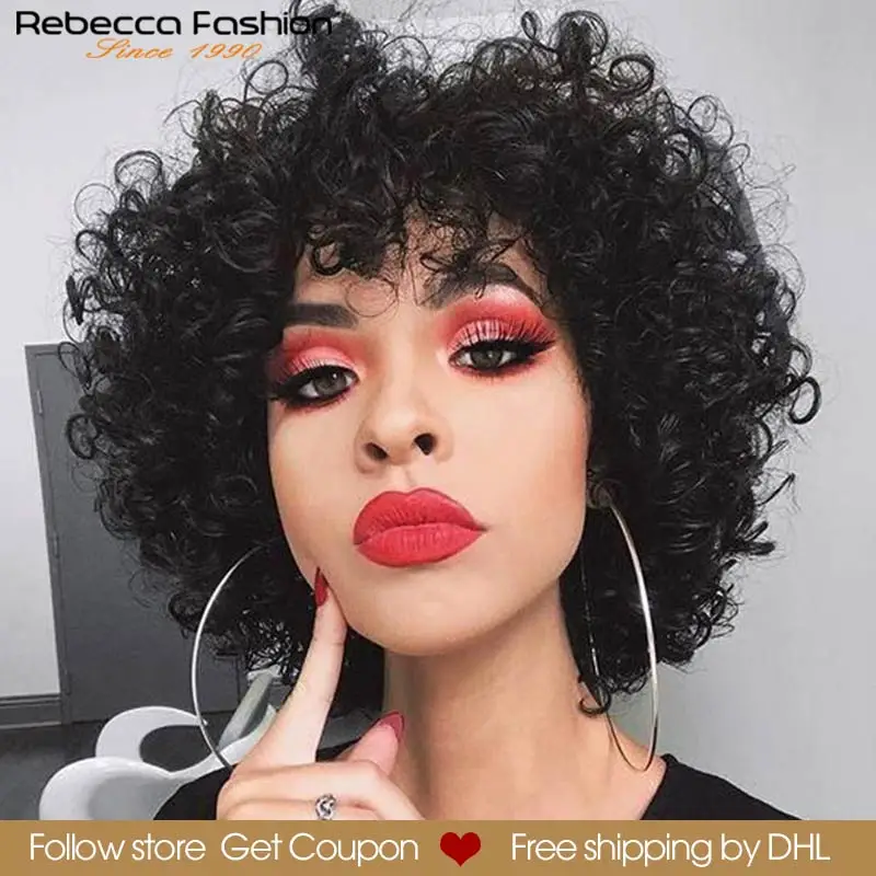 Rebecca Короткие Свободные Вьющиеся парики для черных женщин перуанские Remy Надувные вьющиеся человеческие волосы парики 10 цветов Бесплатная доставка