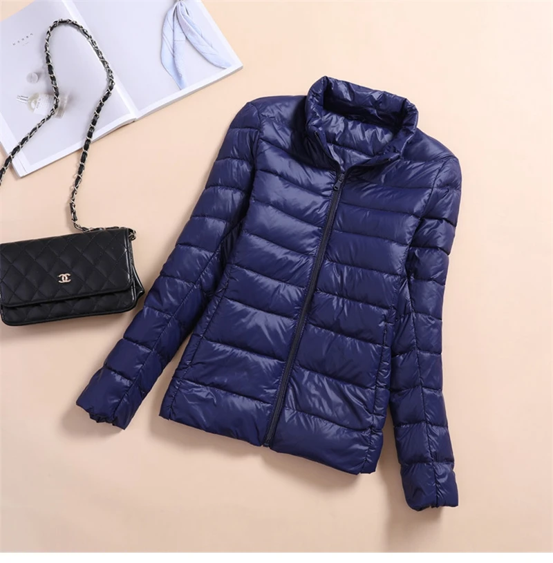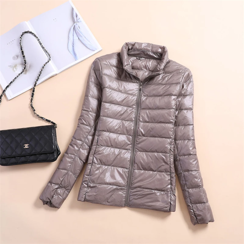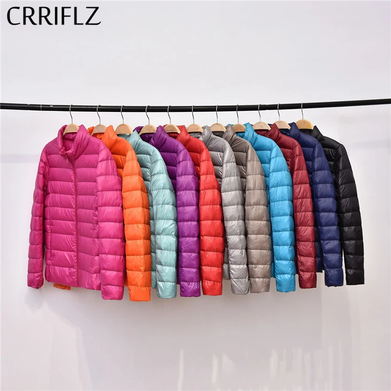 Куртка CRRIFLZ женская короткая тонкая на 90% белом утином пуху, пальто на одной молнии с воротником-стойкой, теплая верхняя одежда, осень-зима