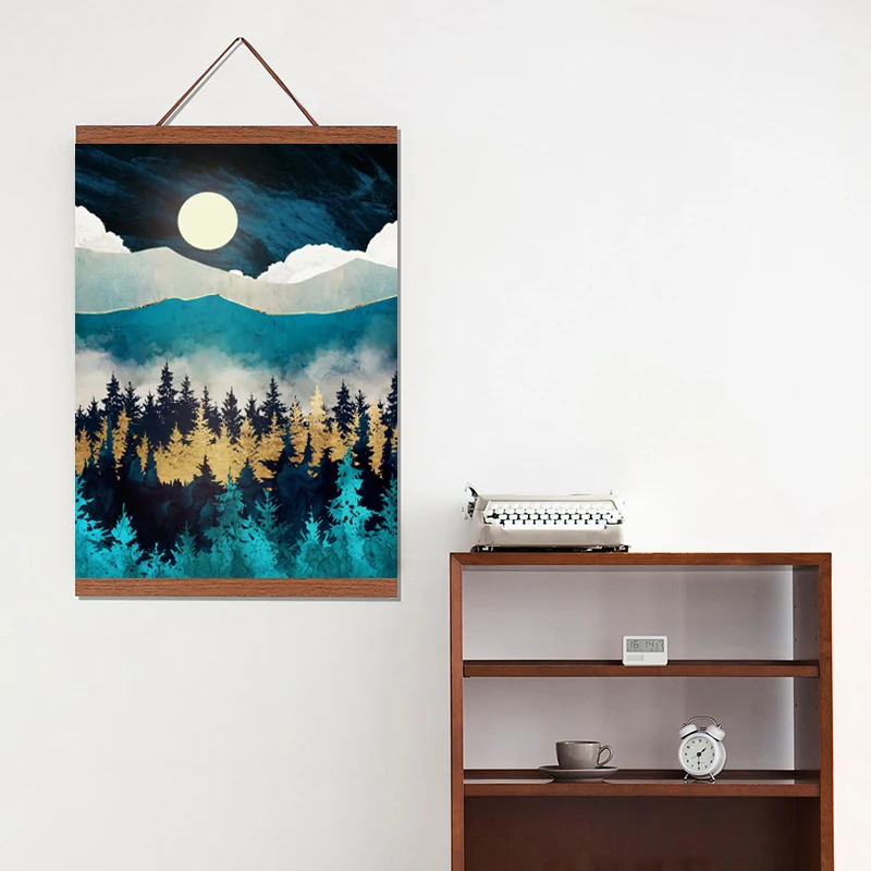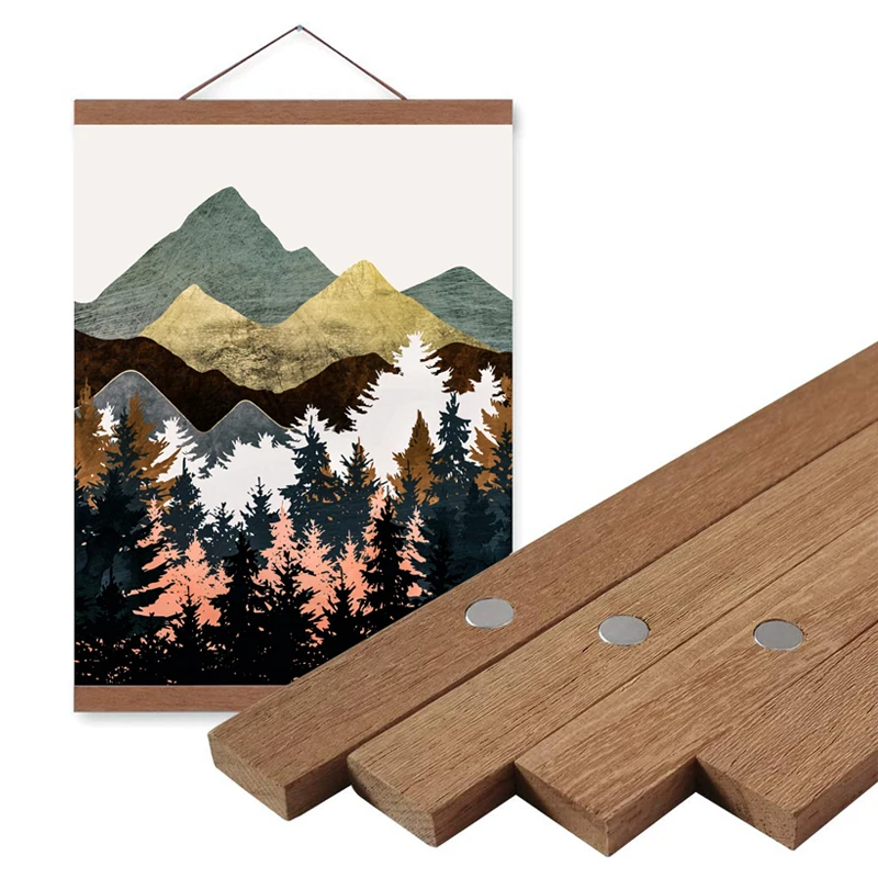 DIY магнитная вешалка для постеров в деревянной раме, скандинавский холст с принтом, подвесная Настенная картина для домашнего декора 21-60 см, A4, A3