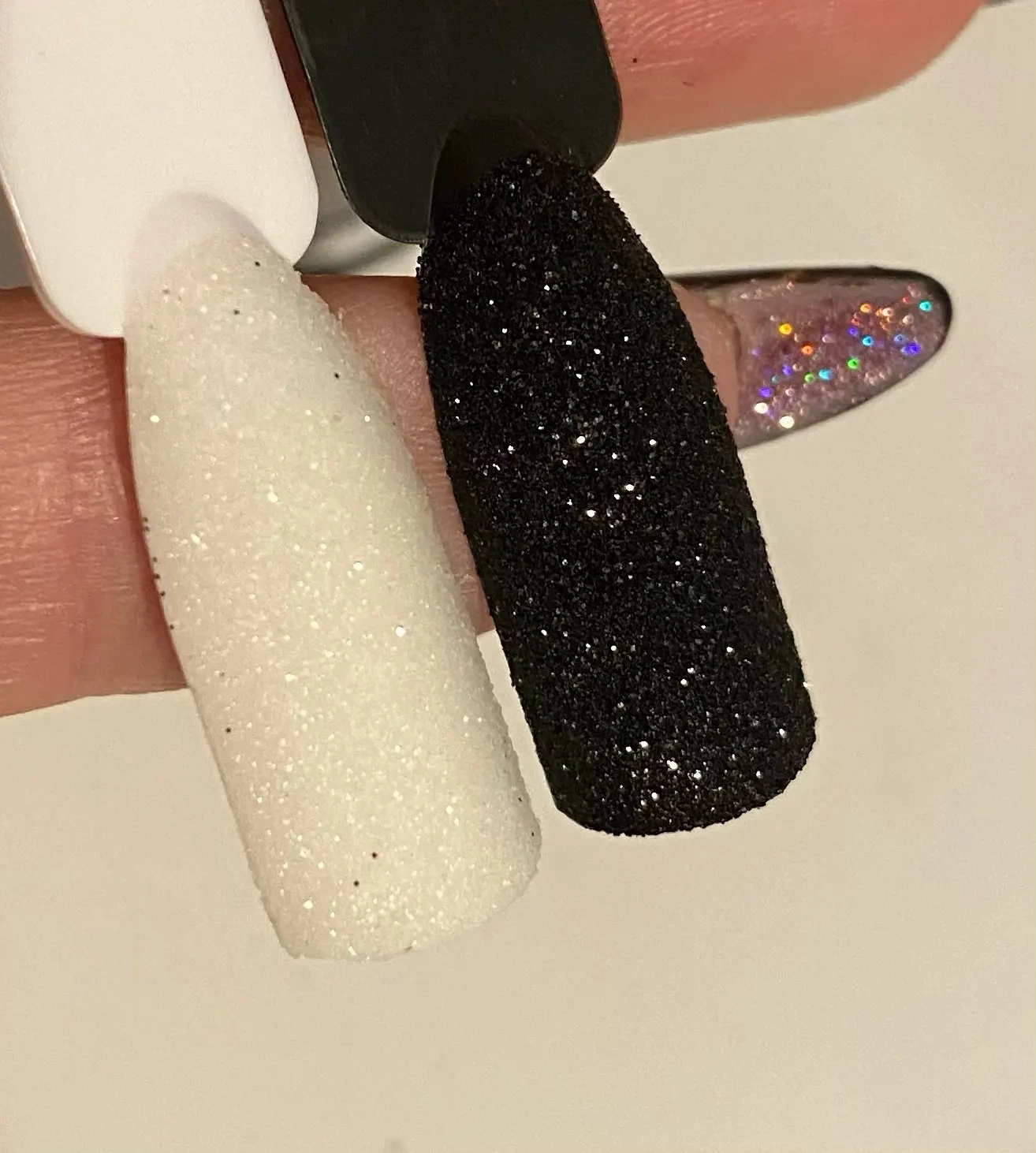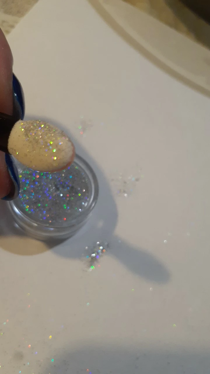 очень мелкие блестки, похожие на снег, к зимнем дизайном само то,красиво переливаются,буду еще заказывать