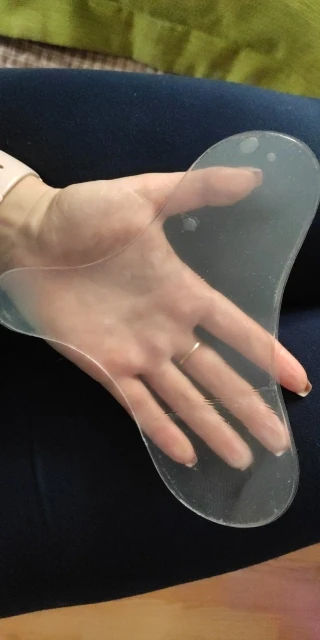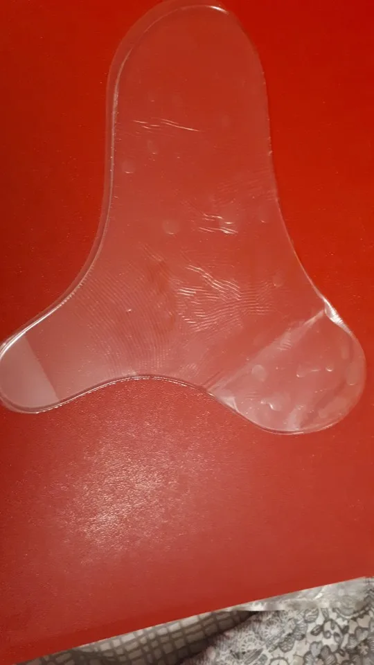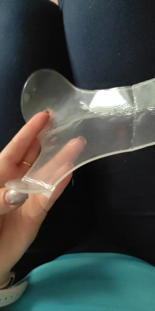 покупала маме, носила один раз, поэтому по динамике не скажу, но ей вроде понравилось) хорошо клеится, мыть пока не пробовали. чисто субъективно мне кажется что он более полезен именно на ночь, чтоб реально держать кожу) но может и ежедневное ношение по полчасика даст свои плоды, посмотрим) пришло достаточно быстро, точно, правда не скажу, чуть с заломом, но на использование никак не влияет. на ощупь приятный мягкий силикон, достаточно большой по площади, отдельно заклеен хвостик для удобного отпирания плёнки.