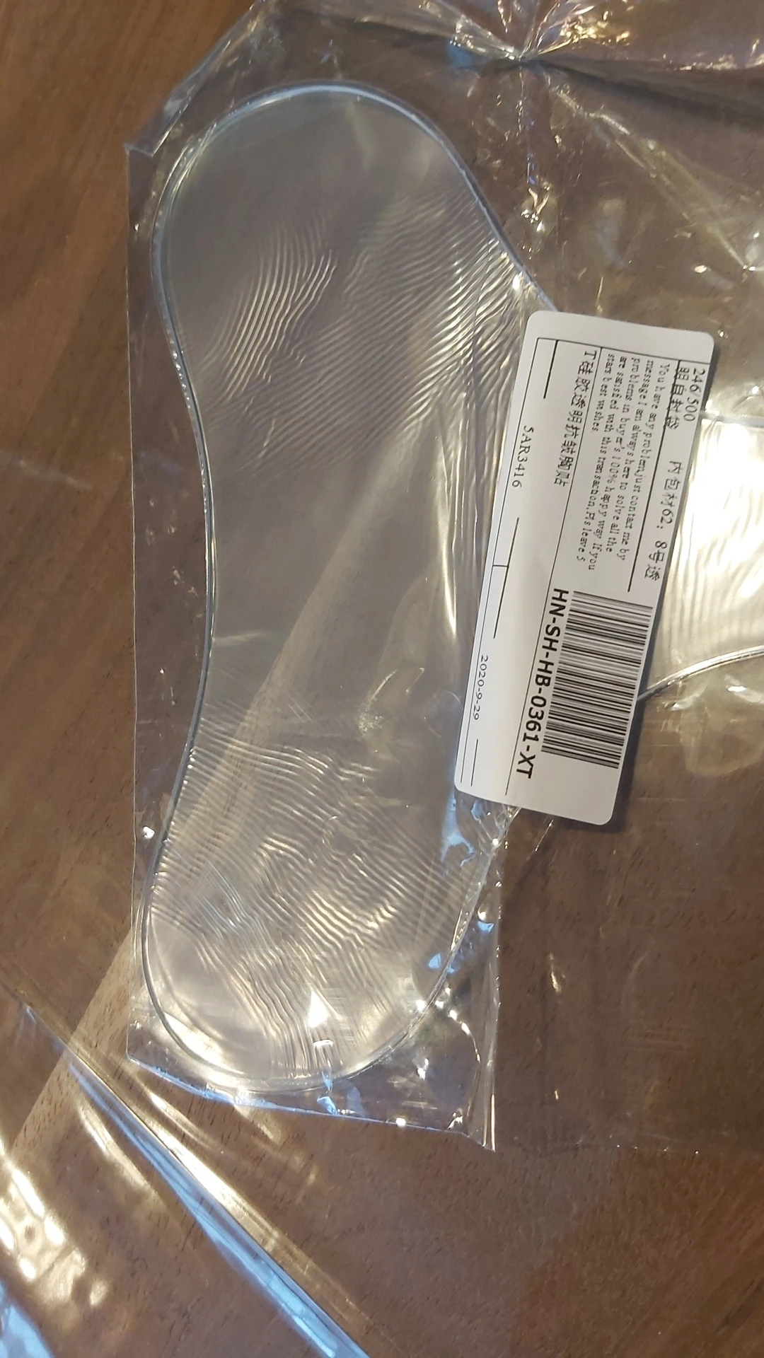 посылка пришла в эстонию меньше чем за месяц. качество материала такое,как например у патчей для глаз. одна сторона ну прям липкая. думаю что надо сначала нанести крем, а потом положить этот пластик или как его назвать. испробую и потом напишу