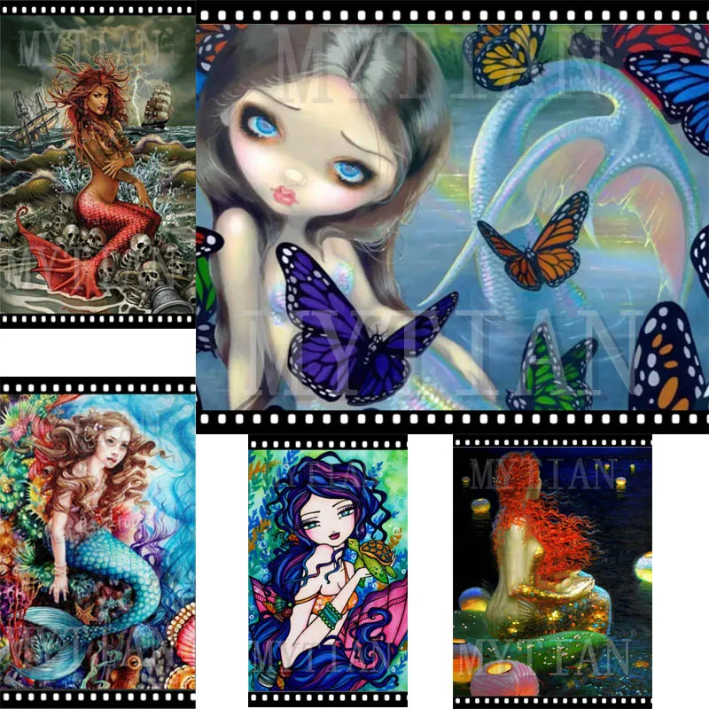 Алмазная картина с изображением сказочной русалки, квадратная 3d вышивка крестиком 5d, вышивка стразами, картины для Стразы