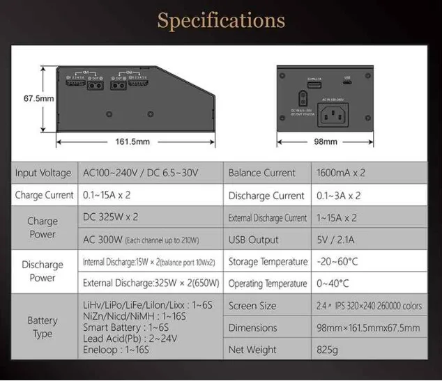 Мощность зарядки: 325 Вт X 2 постоянного тока