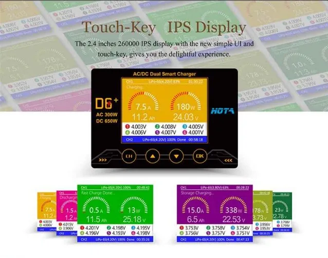 HOTA D6 + Plus AC 300 Вт DC 2X325W 2X15A Двухканальное умное зарядное устройство Dis зарядное устройство Lipo зарядное устройство для радиоуправляемого дрона запасные части