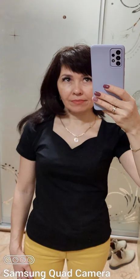 Блузка понравилась, хороший хлопок. Села на российский 50 хорошо: не в обтяг, и не висит. Вырез немного топорщится, но может от помятости, ещё не гладила. Доставка достаточно быстрая. Рекомендую