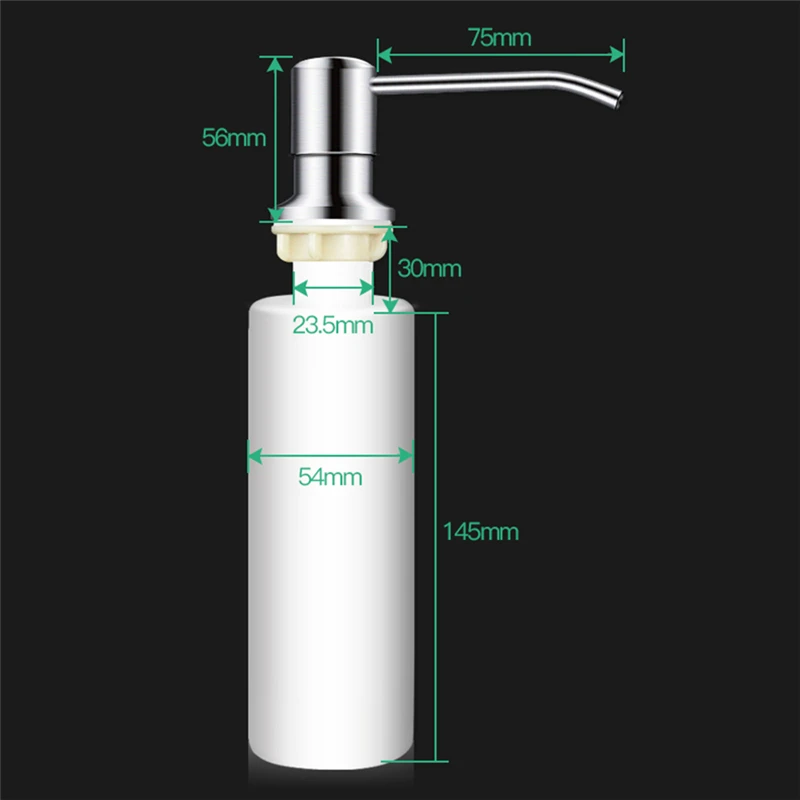 Размеры: 2,5 см диаметр установки (ёмкость 350 мл)Отверстие для бутылок размером около 26*5,5 смУстановка инструкции по уходу за изделием Установка размер (2,5 см Упаковка: одна картонная упаковка, плюс коробки партии груза на полный контейнер логистика упаковкиМатериал: пластиковая головка/пластиковое покрытие и т. д., бутылка из полиэтиленового материалаВысококачественный пластик, может быть установлен дезинфицирующее средство для рук или моющее средство, плюс Удобная жидкостьБез разборки, голова непосредственно к гидравлическому подъему, вы можете добавить обычный контейнер для моющего средстваПластиковый диспенсер для мыла для кухонной раковиныМногослойное абразивное комбинированное армирование, не свободное, не легко выпадаетПластиковая Точная головка для рисования, изысканная красотаМногоуровневая усиленная посылка, только для того, чтобы быть больше логистической поддержкиТочная Медная головка с гальваническим покрытием, стильная, более подходящая для большой раковины, лучший выборДоступный, яркий цвет, больше подходит для обычной замены клиентаПосылка включает в себя: 1 дозатор мыла для раковины
