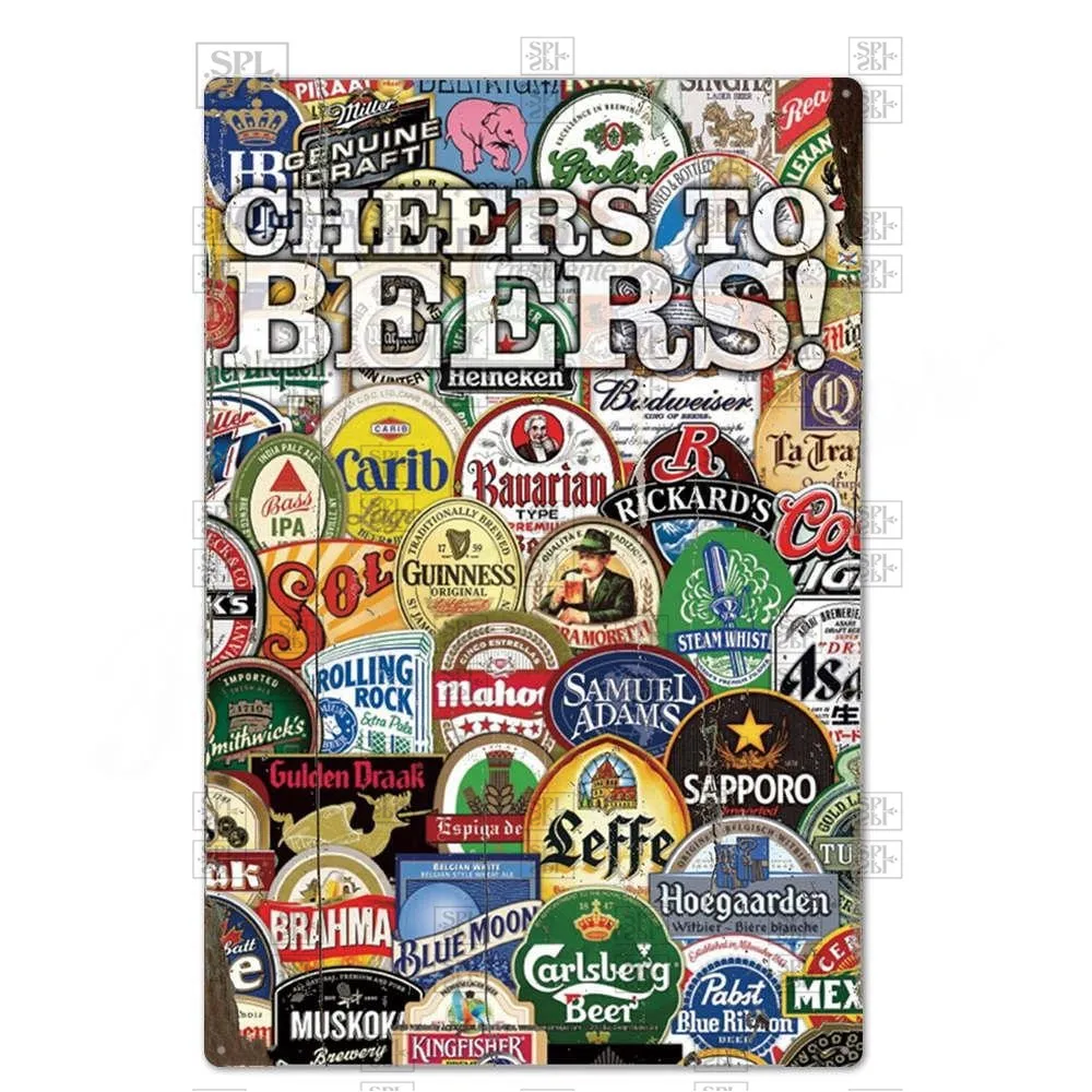 Cheers холодный эскиз пива надпись ретро шаблон бар металлическая т...
