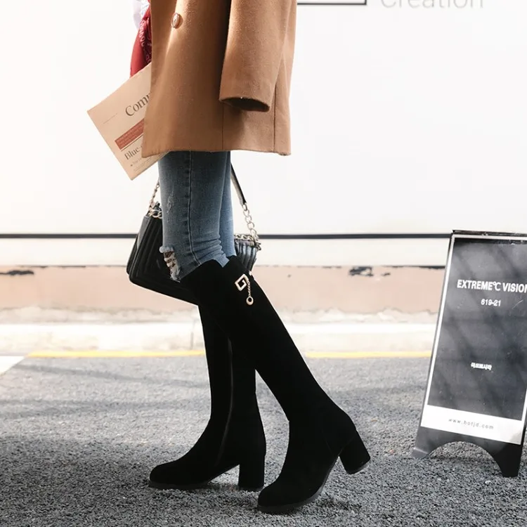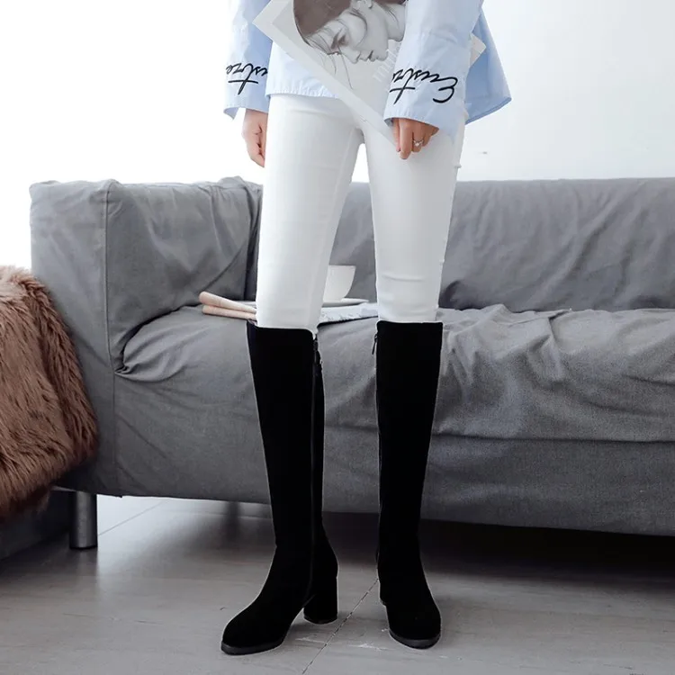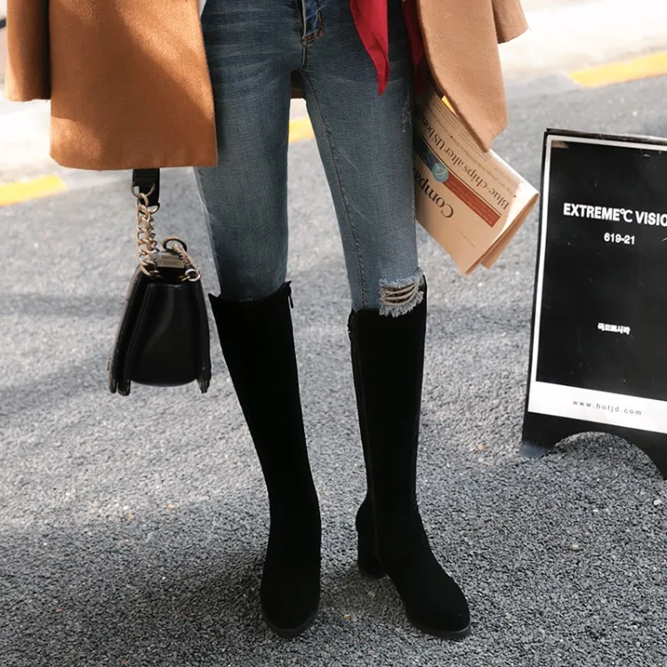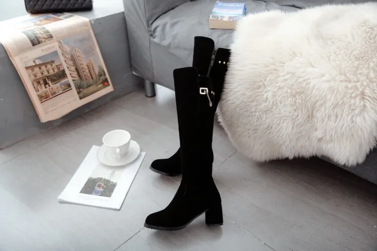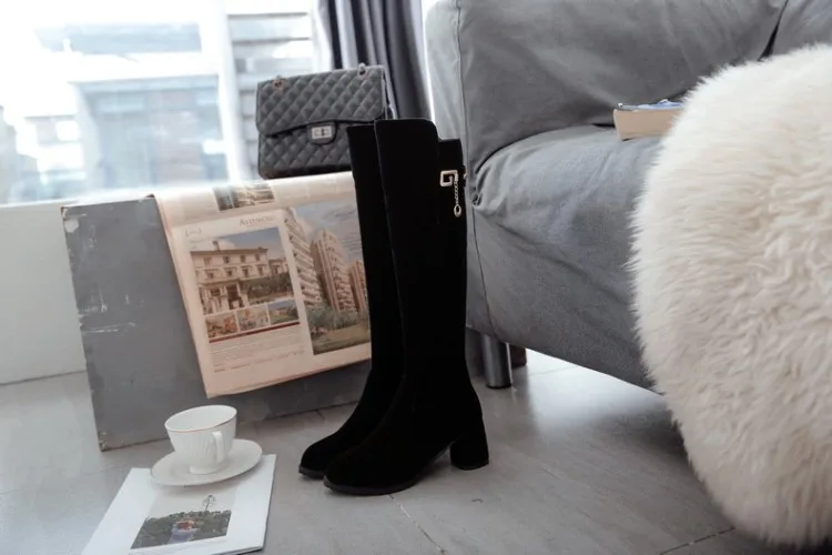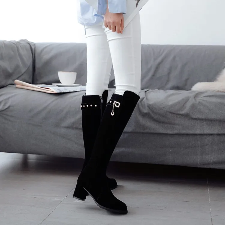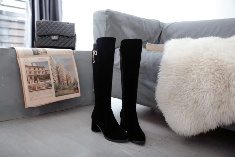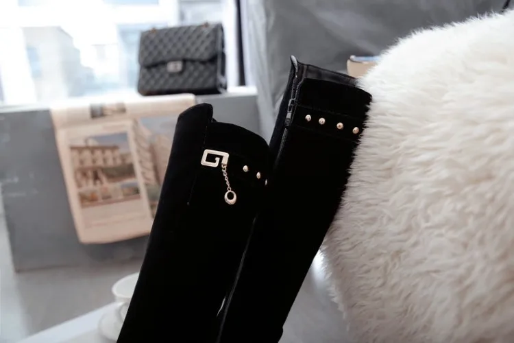 Сапоги большого размера; Женские зимние сапоги; Женская обувь; botas; Боковая молния; Жемчужная подвеска