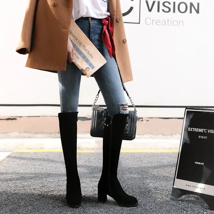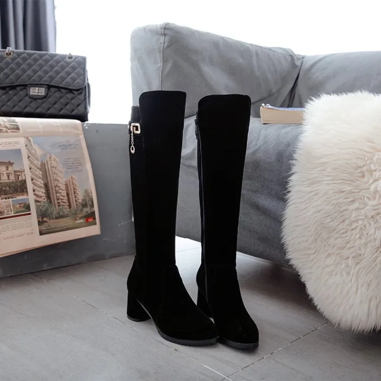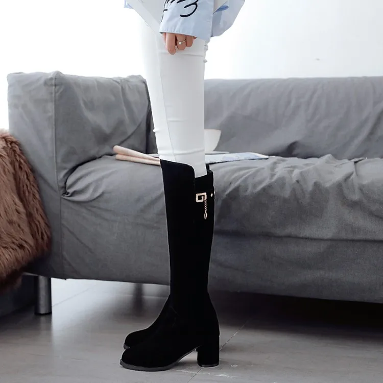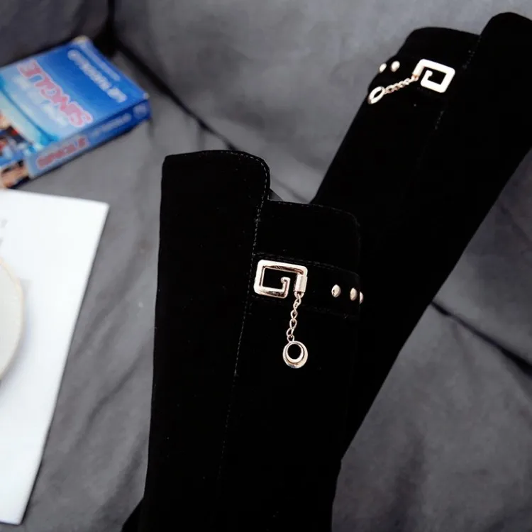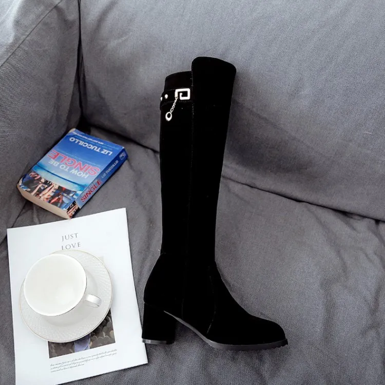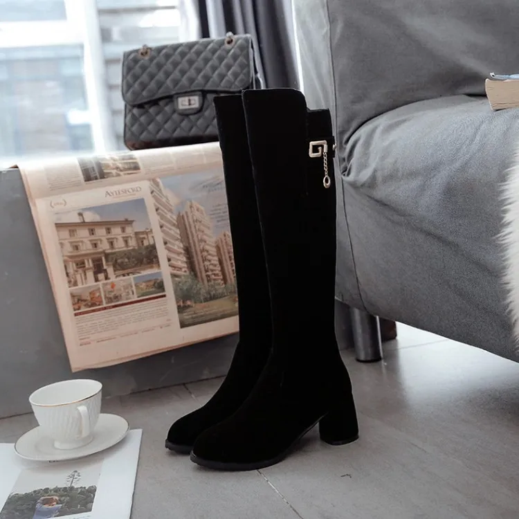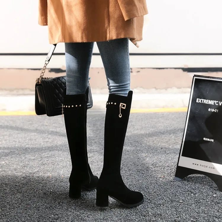 Сапоги большого размера; Женские зимние сапоги; Женская обувь; botas; Боковая молния; Жемчужная подвеска